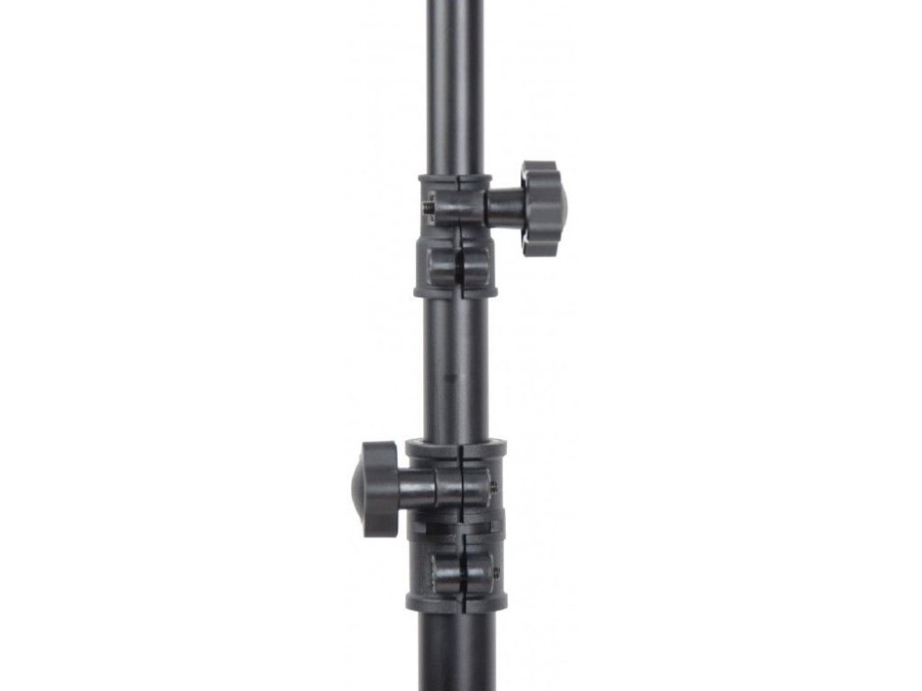 STAND4me LS1 MKIII to statyw oświetleniowy typu "T". Model posiada płynną regulację wysokości od 120 do 265 cm. Wyposażony jest w szeroki, 100-centymetrowy drążek o maksymalnym udźwigu 30 kg, do którego można przymocować do 8 urządzeń, takich jak efekty świetlne, reflektory PAR, moonflowery, projektory, kompaktowe skanery, stroboskopy i wytwornice mgły. Idealnie nadaje się dla mobilnych DJ-ów, zespołów muzycznych oraz teatrów i domów kultury, ponieważ statyw oświetleniowy można szybko zmontować i zdemontować. Może być również stosowany do małych instalacji stałych, na przykład w szkołach, przedszkolach lub innych instytucjach do zawieszania świateł lub różnego rodzaju projektorów.