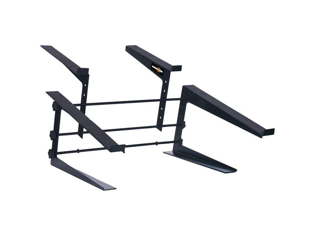 STAND4ME LT PRO to wysokiej jakości, profesjonalny i stabilny stojak na laptopa dla DJ-ów, na którym można umieścić również mikser, kontroler, efekt lub inne urządzenie. Stojak DJ-ski jest wykonany ze stali, dzięki czemu jest solidny i wytrzymuje duże obciążenia. Ten stojak idealnie nadaje się do instalacji w studiach, klubach, a także do użytku domowego. Można go umieścić na istniejącym zestawie DJ-skim, gdy pojawi się problem z brakiem miejsca. Stojak posiada antypoślizgową gumową powierzchnię, która zapewnia maksymalną stabilność Twojego sprzętu podczas użytkowania. Lekko nachylone platformy na konsolę i notebook mają regulowaną wysokość i szerokość, co zapewnia prawidłowe umieszczenie urządzenia i poprawia ergonomię. Podstawę można przykręcić do blatu stołu, skrzyni transportowej lub postawić swobodnie na dowolnej powierzchni.