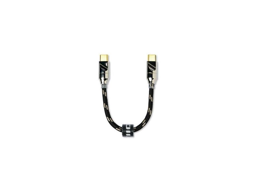 Luksusowy kabel USB-C do USB-C z obsługą szybkiego ładowania. Całkowicie aluminiowa obudowa złącza, posrebrzany kabel miedziany. Długość 10 cm.