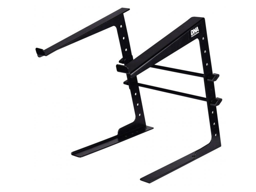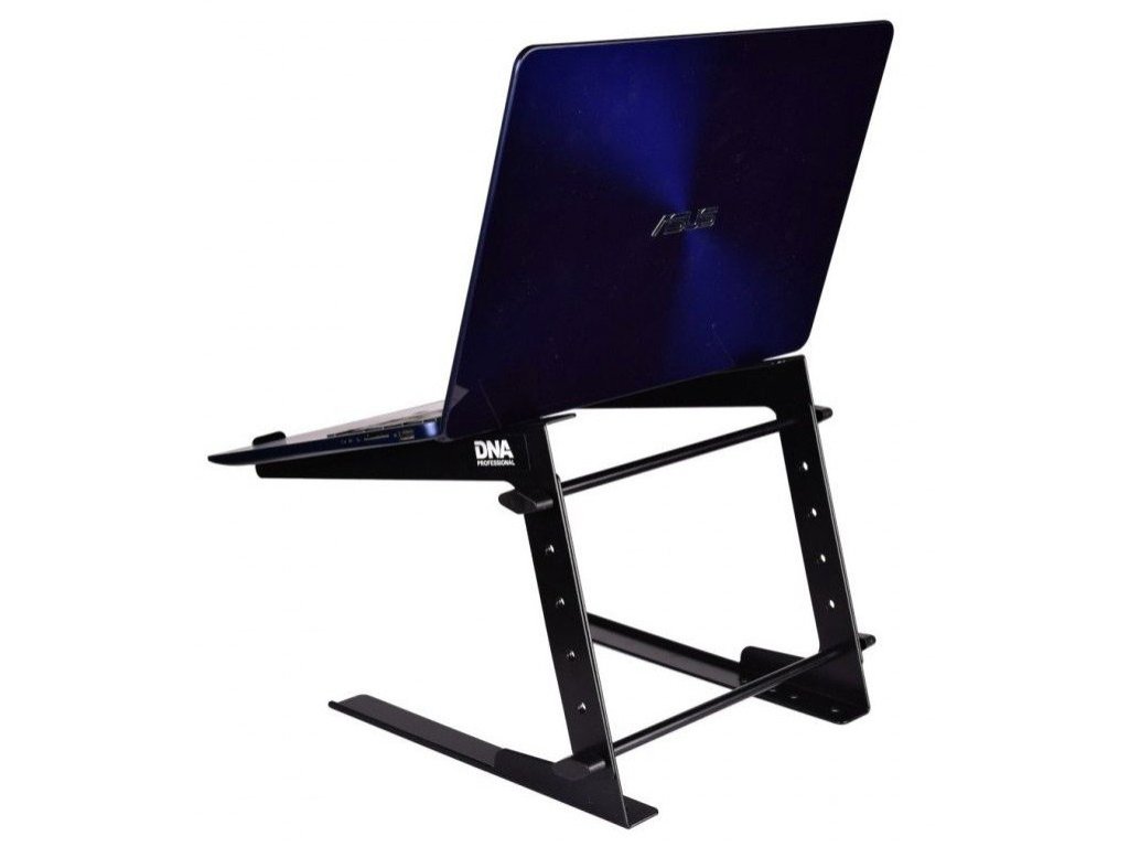 DNA LT1 MKII to profesjonalny, stabilny, a jednocześnie bardzo lekki statyw na notebooka, który może być również używany jako statyw pod mikser, kontroler DJ, sterowniki oświetlenia, efekty zewnętrzne, projektory i inne urządzenia potrzebne w pracy dźwiękowca lub oświetleniowca, mobilnego DJ-a lub zespołu. Statyw jest w całości wykonany ze stali malowanej proszkowo na kolor czarny. Konstrukcja jest skręcana bez użycia dodatkowych narzędzi, a cały montaż nie zajmuje więcej niż 2 minuty. 8 antypoślizgowych podkładek zapewnia, że urządzenie pozostanie bezpiecznie na statywie. Wysokość statywu na notebooka jest regulowana i może wynosić od 22 do ponad 31 cm, dzięki czemu idealnie dopasujemy go do indywidualnych potrzeb każdego użytkownika.