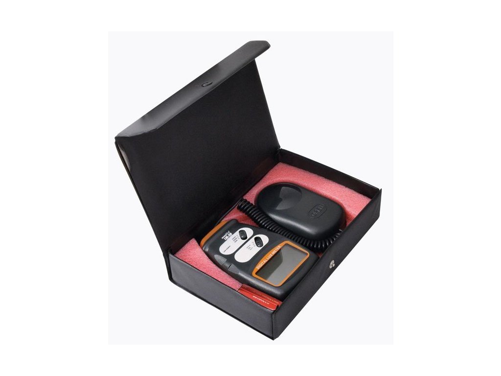 Eurolite LM-50 Luksomierz - cyfrowy miernik do szybkiego pomiaru natężenia światła. 3 opcjonalne zakresy pomiarowe od 0-50.000 luksów. Duży 3 1-cyfrowy wyświetlacz LCD; czytelny nawet w słabych warunkach oświetleniowych. Automatyczne zerowanie. Funkcja przechowywania danych. Wskaźnik stanu baterii. Zewnętrzny czujnik światła dla prostego, łatwego w obsłudze użytkowania. Wysoka dokładność pomiaru. Szybka zdolność reakcji. Działa na baterię 9 V. Zestaw zawiera baterie i pokrowiec do przenoszenia.