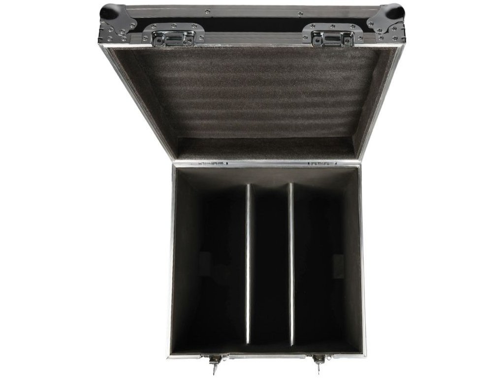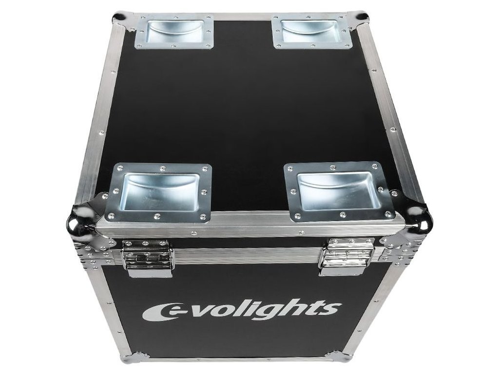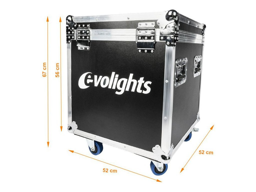 Evolights Lumeno Case 2w1 to profesjonalny, solidny kufer transportowy na 2 reflektory Lumeno lub inne urządzenia o podobnych wymiarach. Kufer wykonany jest z mocnej 7mm sklejki pomalowanej specjalną wodoodporną farbą. Krawędzie wzmocnione są aluminiowymi profilami. Na rogach znajdują się chromowane, kulowe ochraniacze, które dodatkowo chronią kufer i otoczenie, eliminując ostre krawędzie.