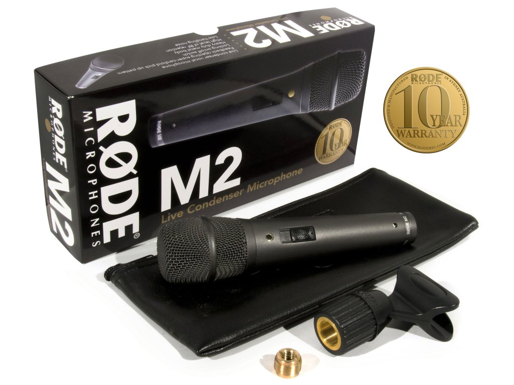 Mikrofon pojemnościowy M2 pochodzący z warsztatu australijskiej firmy RODE jest przeznaczony przede wszystkim do występów na żywo, ale dzięki wysokiej jakości dźwięku znajdzie również zastosowanie w studio. Solidna konstrukcja metalowej obudowy wywodząca się z modelu S1 oraz odporność na sprzężenia zwrotne - dzięki hiperkardioidalnej charakterystyce kierunkowej - czynią z M2 wszechstronny mikrofon.