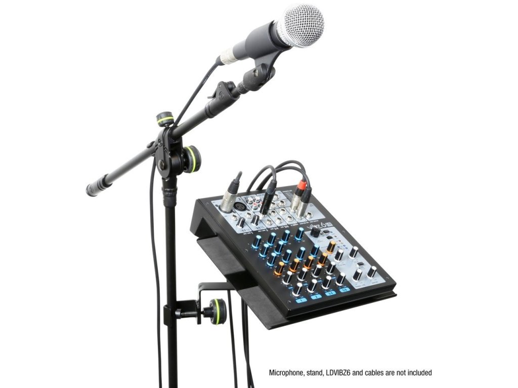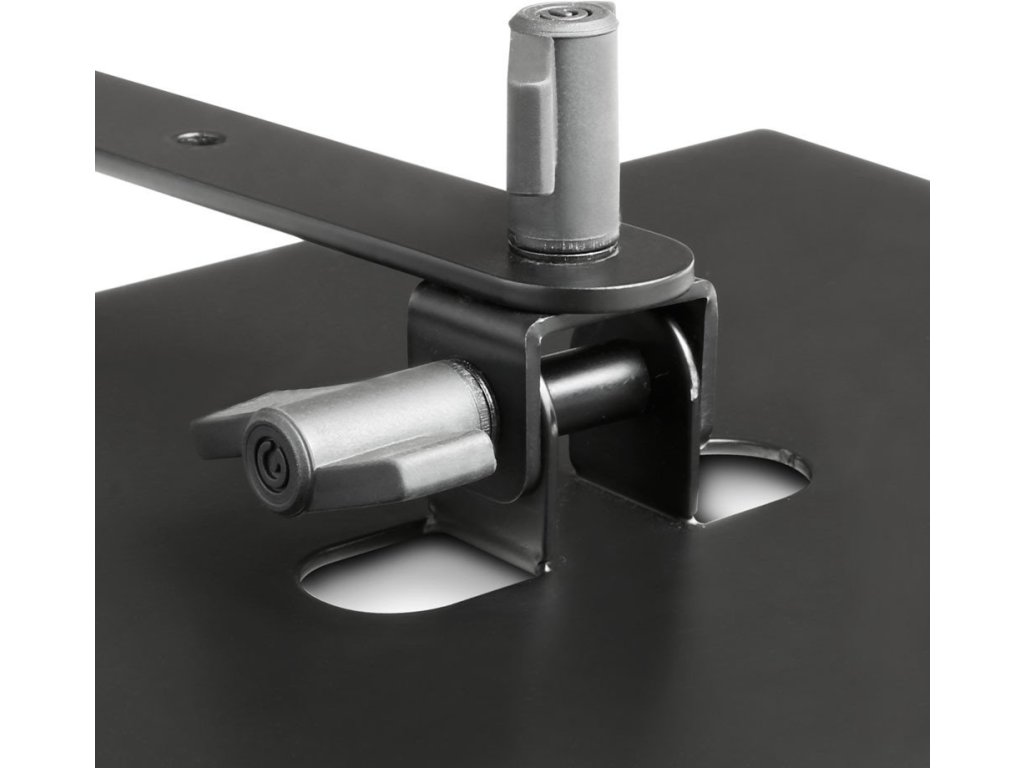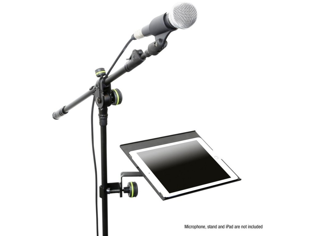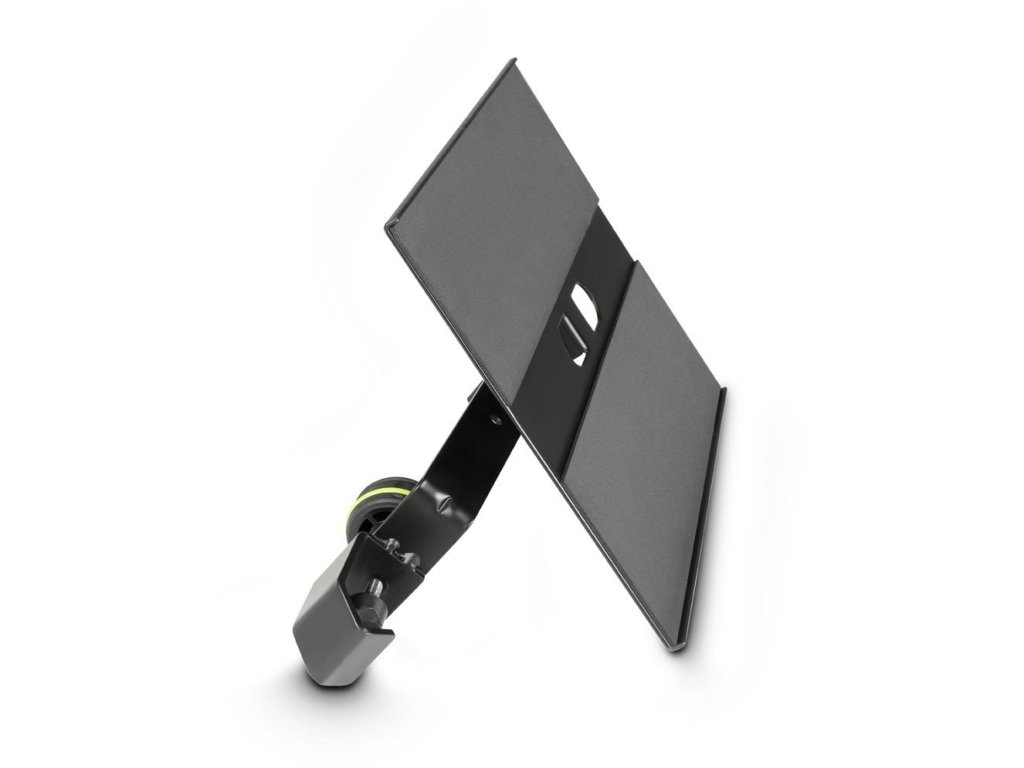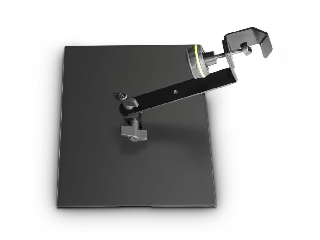 MA TRAY 1 to stalowa półka z regulacją 360°, którą można łatwo przymocować do dowolnego statywu mikrofonowego. Wymiary 250 x 195 mm są wystarczająco duże, aby pomieścić tablety i akcesoria, takie jak kapodastry, kostki do gitary lub małe instrumenty perkusyjne.