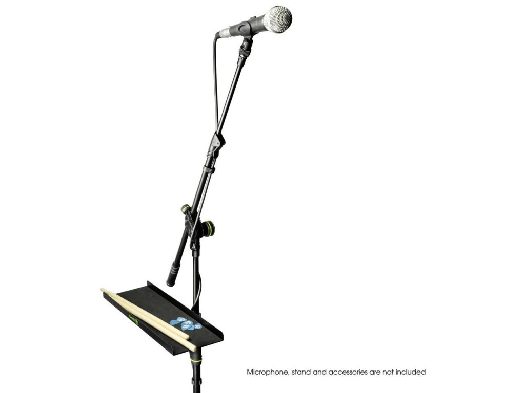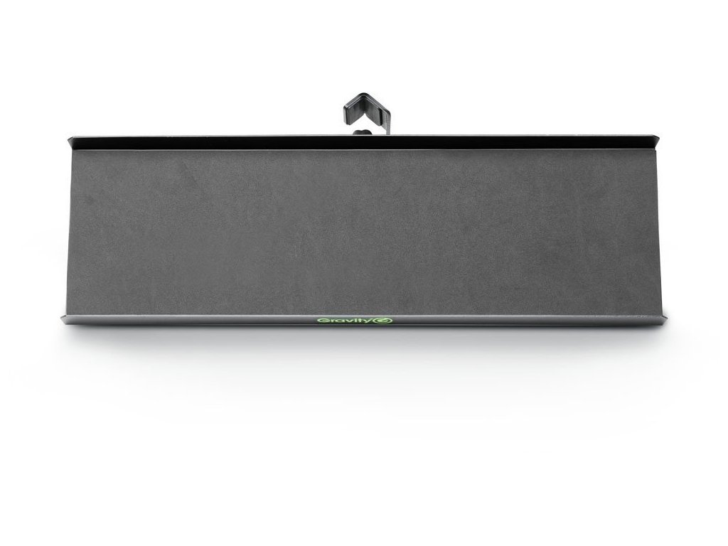 MA TRAY 2 to stalowa półka regulowana o 360°, którą można łatwo przymocować do dowolnego statywu mikrofonowego. Wymiary 400 x 130 mm są wystarczająco duże, aby pomieścić akcesoria, takie jak kapodastry, kostki do gitary lub małe instrumenty perkusyjne.