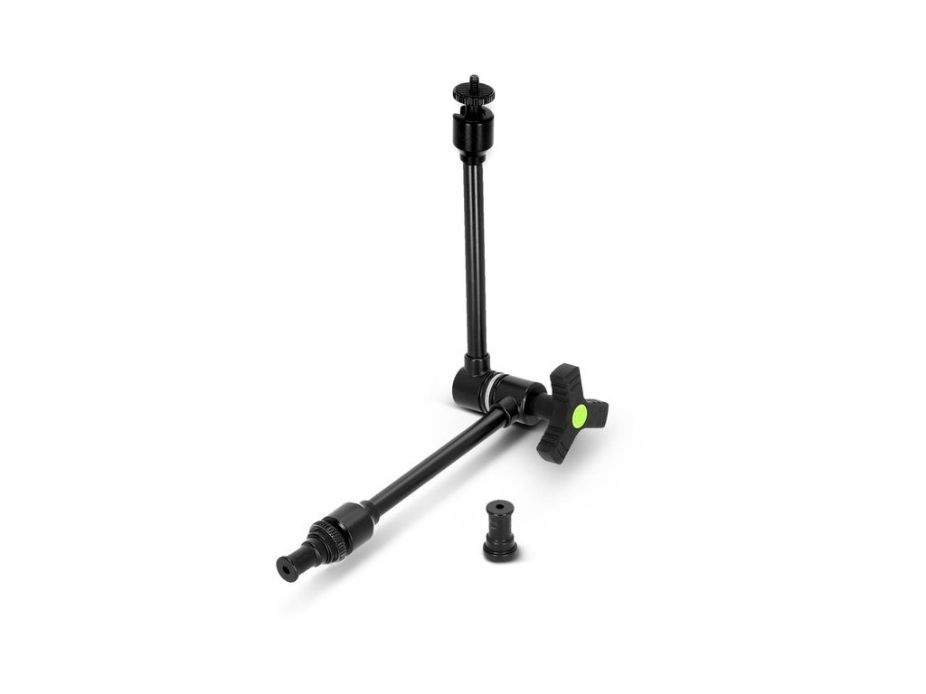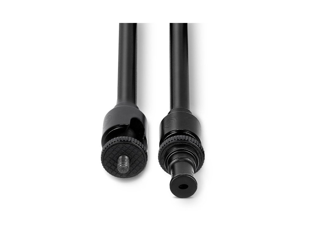 VARI-ARM L TV to innowacyjne ramię montażowe z trzema przegubami, które umożliwiają swobodne i precyzyjne przesuwanie urządzenia do dowolnej pozycji. Jego główną funkcją jest: Do zablokowania i odblokowania wszystkich trzech przegubów wystarczy tylko jedna śruba regulacyjna. Gdy znajdziesz żądaną pozycję, dokręć śrubę blokującą, a pozycja telewizora VARI-ARM L TV jest mocno i bezpiecznie utrzymywana. Oba końce VARI-ARM L TV są wyposażone w trzpień TV 16 mm do mocowania VARI-ARM do zacisku kratownicowego Super Clamp. Oba wyjścia TV16 można odkręcić. Spowoduje to zwolnienie gwintu 1/4", do którego można przymocować uchwyt mikrofonowy, filtr pop i inne.