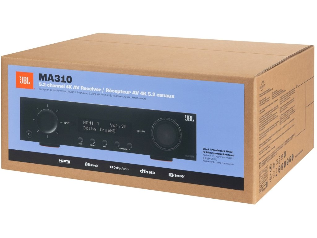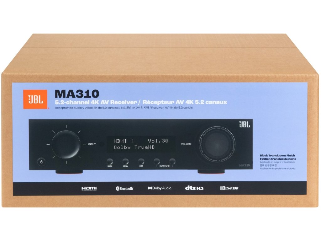 JBL MA310 to najniższy model z serii wzmacniaczy AV JBL, który aspiruje do stania się prawdziwym centrum domowej rozrywki. Oferuje inteligentne rozwiązanie systemu dźwiękowego 5.2, które w kompleksowy sposób rozwiązuje problem słabej jakości dźwięku cienkich telewizorów LED / OLED, soundbarów i podobnych urządzeń, w tym niewystarczającej elastyczności funkcjonalnej i niskiej łączności. Dominującym elementem jest szklana konstrukcja panelu przedniego, na którym nie pozostają odciski palców, z minimalną liczbą elementów sterujących i dużym, czytelnym wyświetlaczem. W zależności od tego, który kolor lepiej pasuje do stylu wnętrza lub podłączonych urządzeń, można wybierać między tradycyjną czernią a nowoczesną bielą szkła przedniego panelu. W odpowiedniej stylistyce dostępna jest również szeroka gama głośników do dwu- lub więcejkanałowego systemu kina domowego. Jest to idealne, dopasowane pod względem wzornictwa i technologii rozwiązanie do domowej rozrywki, które doskonale pasuje do każdego pomieszczenia.