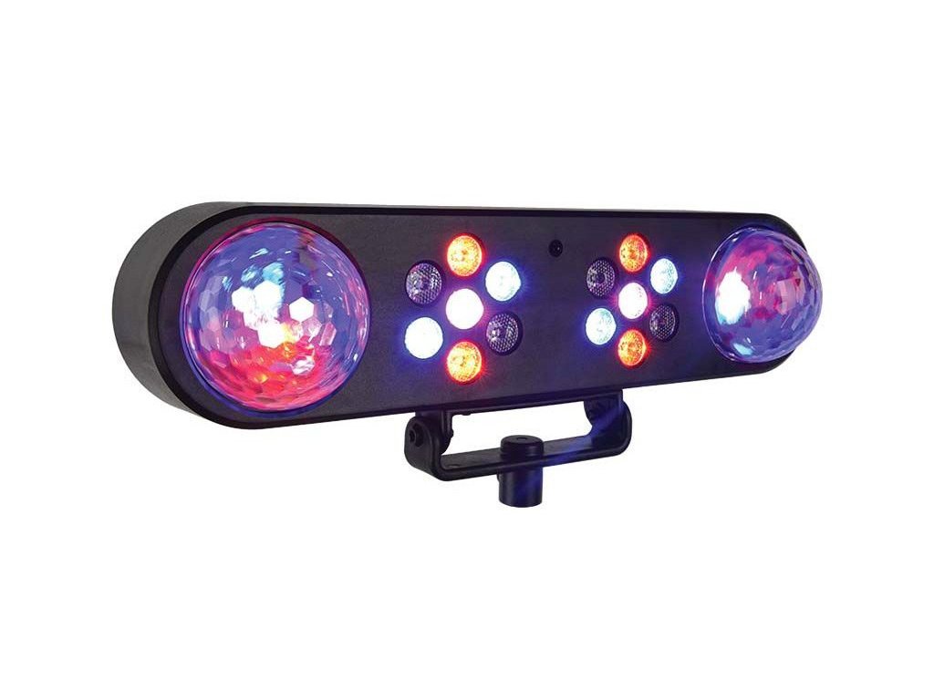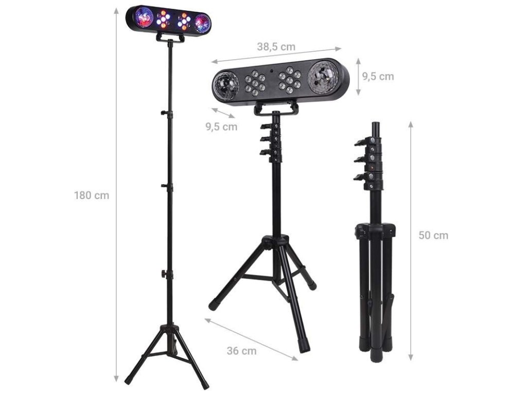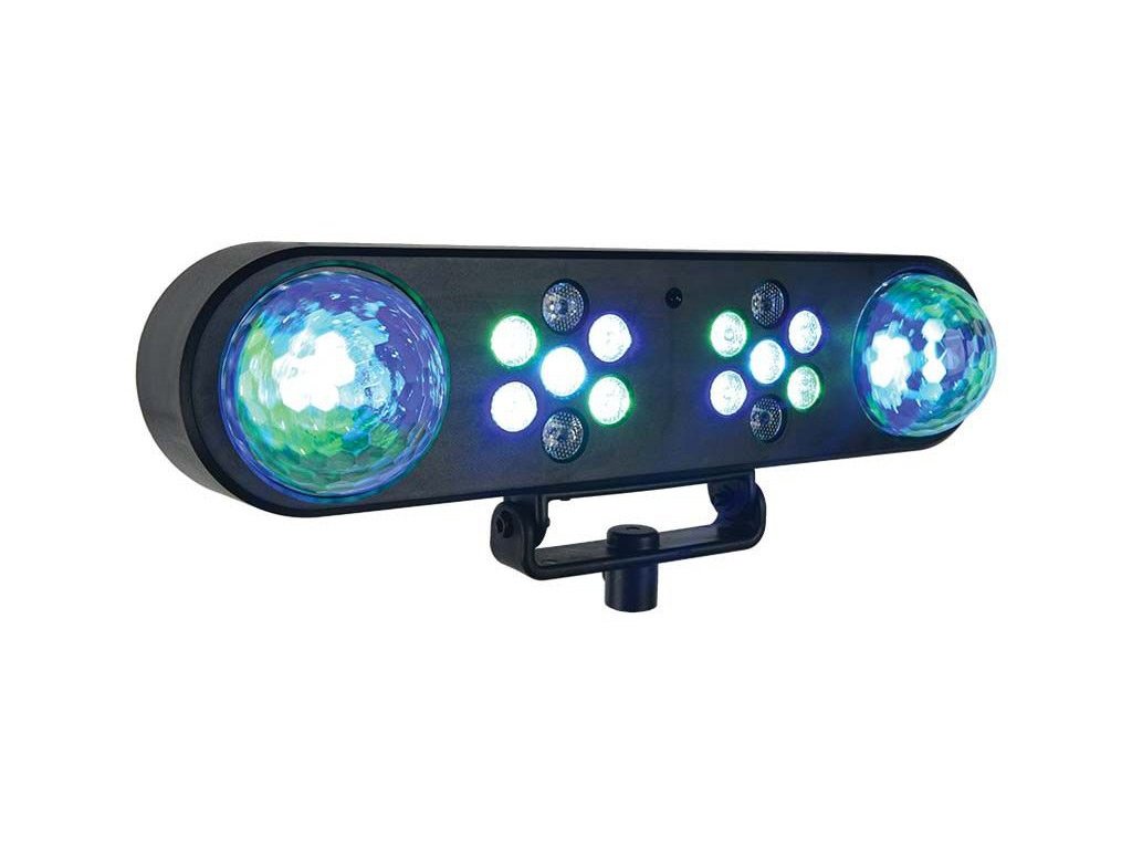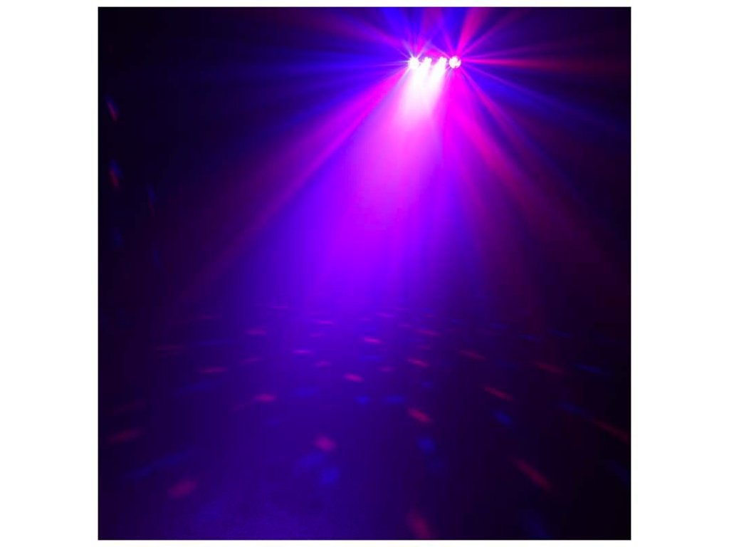 FX Light4Me Magic Bar ma dwie sześciokątne półkule, które działają jak obrotowa lustrzana kula dyskotekowa, która emituje wielokolorowe promienie świetlne. Uzupełniają go dwa reflektory LED PAR. Oba systemy mogą również pracować w trybie stroboskopowym, co tworzy niesamowity efekt migotania i zamrażania obrazu w czasie, zapewniając jeszcze więcej zabawy na parkiecie!