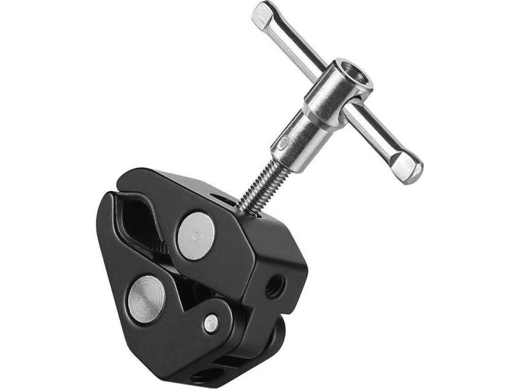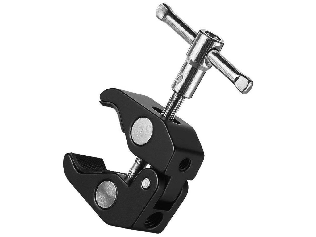 Uniwersalny uchwyt odpowiedni do kieszonkowych rejestratorów, kamer outdoorowych, lamp błyskowych, świateł LED i innych urządzeń potrzebnych do tworzenia materiałów AV. Uchwyt mocuje się za pomocą śruby gwintowanej do drążka statywu mikrofonowego o średnicy od 10 do 50 mm. Do uchwytu można przymocować dodatkowe adaptery z gwintem 1/4" lub 3/8".