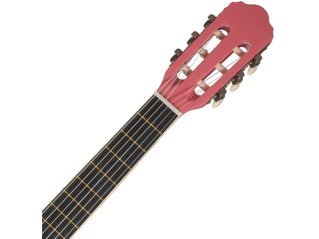 Gitara jest wyposażona w standardowe klucze strojeniowe, które ułatwiają i stabilizują strojenie. Tradycyjne elementy, takie jak czarne lamówki i ozdobna rozeta, nadają instrumentowi elegancki wygląd.