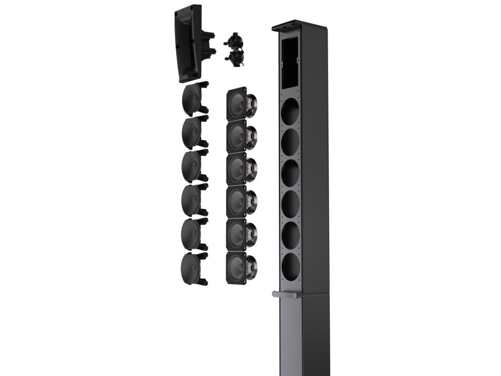 Aktywny system kolumnowy wyposażony w HF: 6 x 3,5" + 2 x 1" + 2 x 8" subwoofer. Kolor czarny.