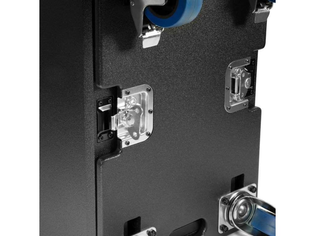 Ta obrotowa płyta transportowa wykonana z 15 mm warstwy brzozowej pokrytej poliureą dla dodatkowej wytrzymałości i trwałości jest odpowiednia do subwoofera MAUI 44 G2. Bezpiecznie mocuje się za pomocą dwóch zintegrowanych zatrzasków motylkowych i jest wyposażona w cztery wytrzymałe kółka ze 100 mm kółkami dla łatwego przemieszczania.