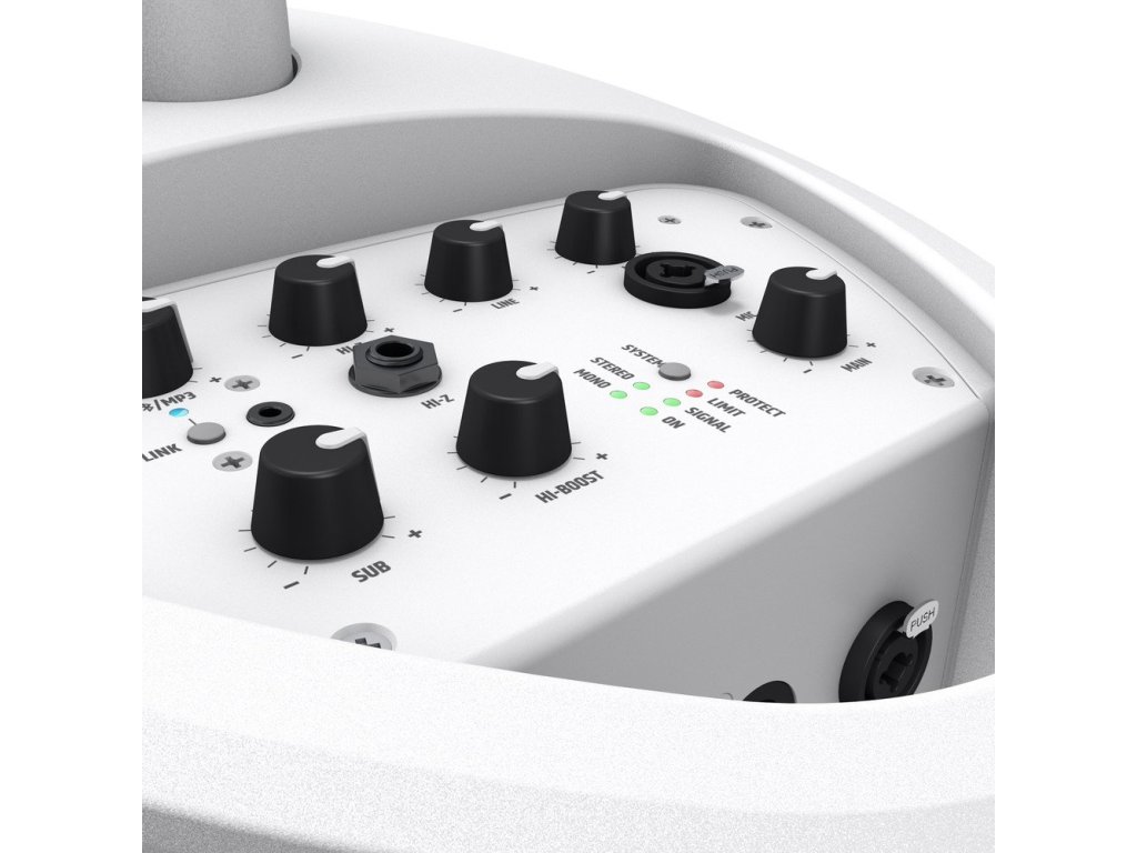 Aby zapewnić niezrównaną jakość dźwięku we wszystkich zastosowaniach, system kolumnowy zawiera LECC DSP firmy LD Systems z wielopasmowym limiterem, korektorem, kompresorem i zwrotnicą. Zintegrowany 4-kanałowy mikser zapewnia oddzielną regulację głośności dla kanałów wejściowych, sumy i subwoofera, a także zmienne wzmocnienie wysokich częstotliwości, co ułatwia szybkie i zrównoważone dopasowanie dźwięku. Technologia LD-Systems Quick-Swap Technology® umożliwia również natychmiastową i prostą wymianę baterii, zapewniając praktycznie nieograniczony czas pracy MAUI® 5 GO 100.