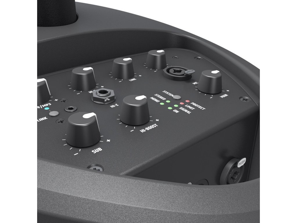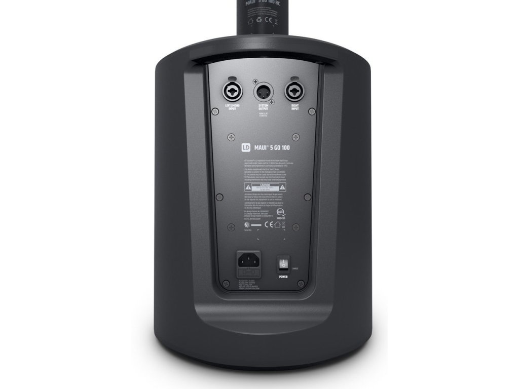 Aby zapewnić niezrównaną jakość dźwięku we wszystkich zastosowaniach, system kolumnowy zawiera LECC DSP firmy LD Systems z wielopasmowym limiterem, korektorem, kompresorem i zwrotnicą. Zintegrowany 4-kanałowy mikser zapewnia oddzielną regulację głośności dla kanałów wejściowych, sumy i subwoofera, a także zmienne wzmocnienie wysokich częstotliwości, co ułatwia szybkie i zrównoważone dopasowanie dźwięku. Technologia LD-Systems Quick-Swap Technology® umożliwia również natychmiastową i prostą wymianę baterii, zapewniając praktycznie nieograniczony czas pracy MAUI® 5 GO 100.