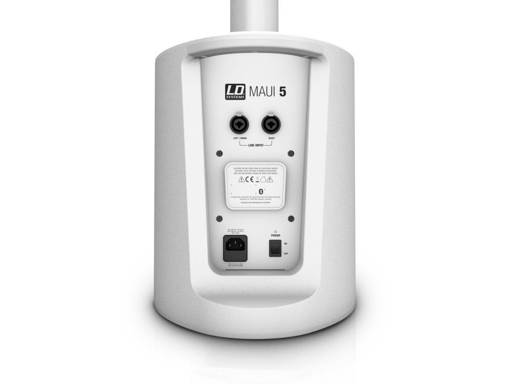 MAUI 5 to ultrakompaktowy system PA z czterokanałowym mikserem i łącznością Bluetooth. Przy wadze 11 kg oferuje maksymalną moc 800 watów. Wzmacniacz klasy D jest wyposażony w szereg obwodów ochronnych (Limiter, Thermal, Short) zapewniających płynne działanie systemu. Oprócz standardowego wejścia stereo (Line In), panel główny jest wyposażony w wejścia dla mikrofonu, instrumentu i MP3, każde z oddzielnym regulatorem głośności. Aby zsynchronizować się z urządzeniem Bluetooth, wystarczy przytrzymać regulator. Szybkie i wygodne połączenie między trzema satelitami a subwooferem umożliwia system kolumnowy pozbawiony jakichkolwiek kabli.