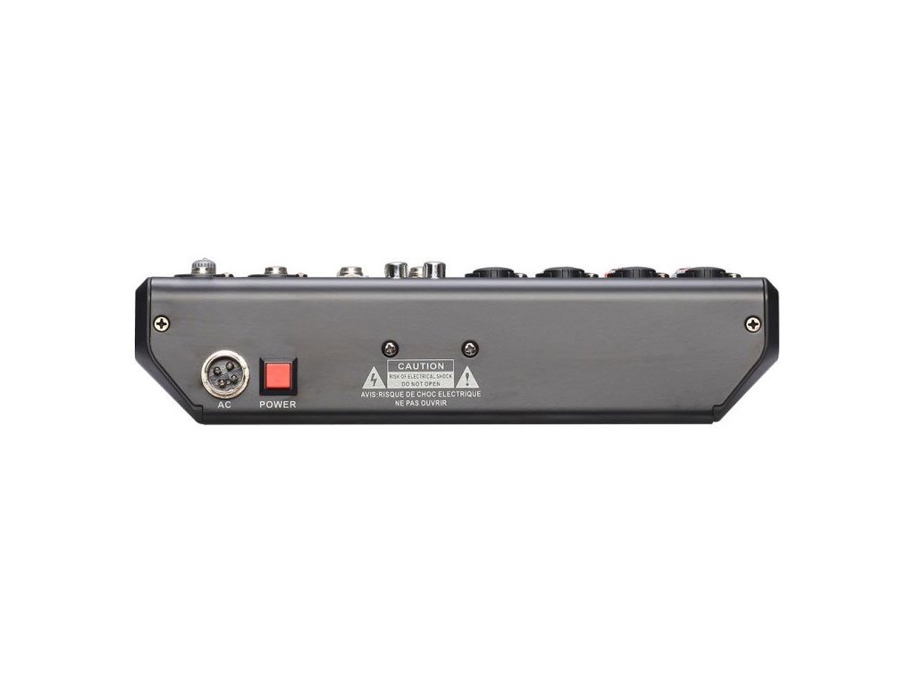 Operator może między innymi kontrolować wysokie i niskie pasmo częstotliwości, poziom wzmocnienia sygnału (GAIN) oraz ilość nałożenia na jednym z 16 wbudowanych FX. Na każdym kanale znajduje się dioda LED sygnalizująca wzrost PEAK. Gdy się zaświeci, możemy szybko reagować na zbyt wysokie poziomy wejściowe i zmniejszyć GAIN. Dużą zaletą jest wbudowany port USB, dzięki któremu można wysłać sygnał ze stereofonicznego wyjścia do komputera.