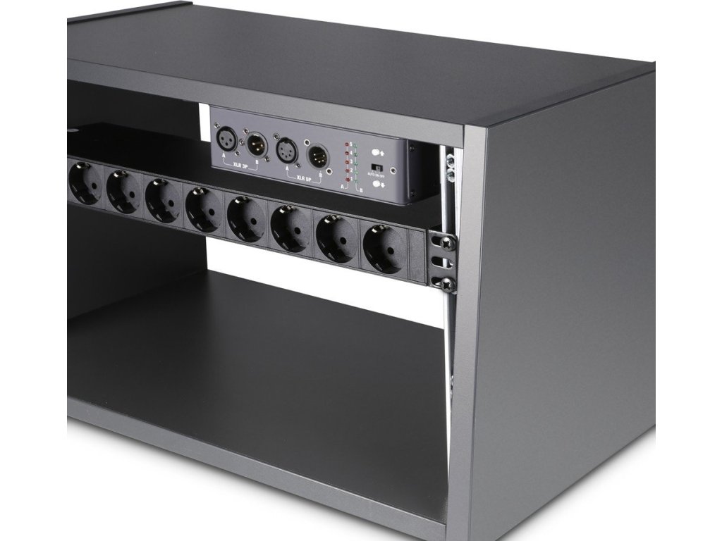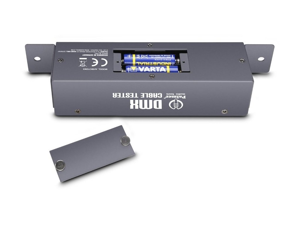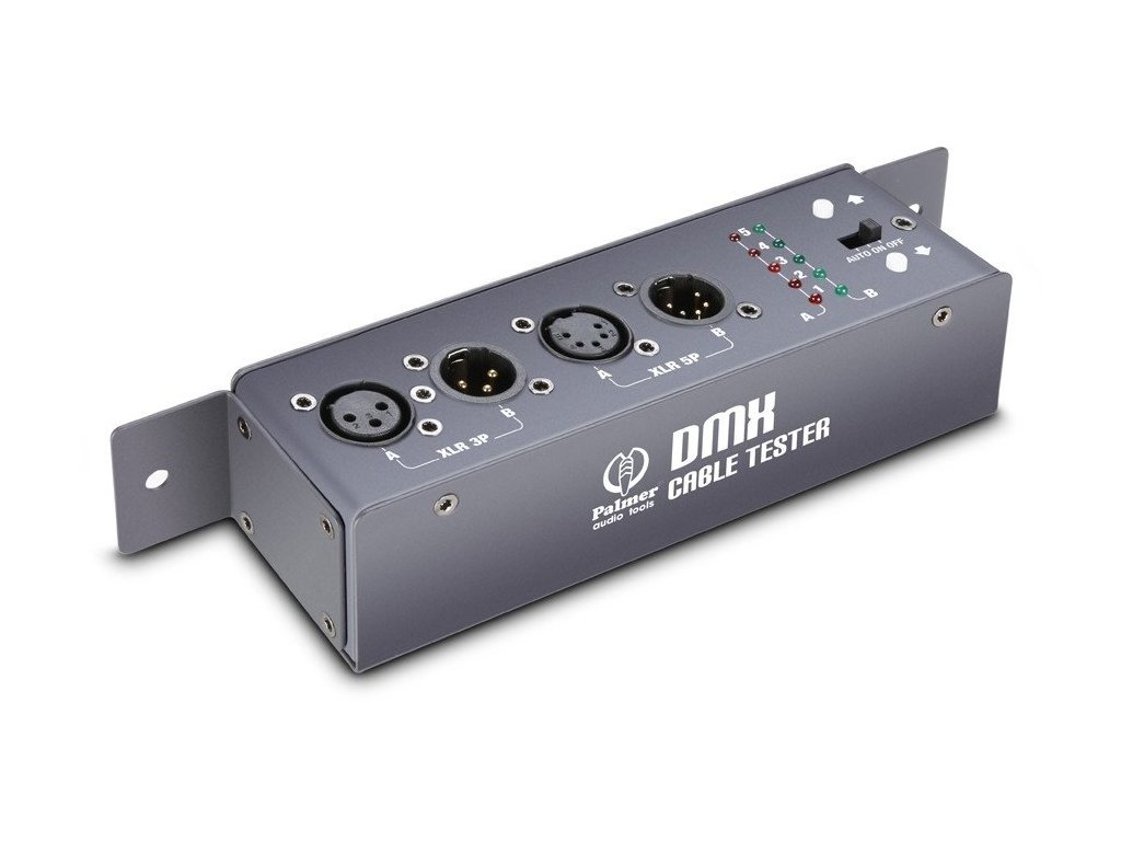 Ten tester kabli sprawdza ciągłość kabli DMX 3- i 5-pinowych w pełni automatycznie lub z ręcznym wyborem bieguna. Dwa jasne rzędy diod LED wskazują stan połączenia wszystkich biegunów. Ponadto kable mikrofonowe XLR można testować na 3-pinowych gniazdach urządzeń. Tester kabli DMX jest dostarczany z dwoma wspornikami montażowymi do zmiennego mocowania.