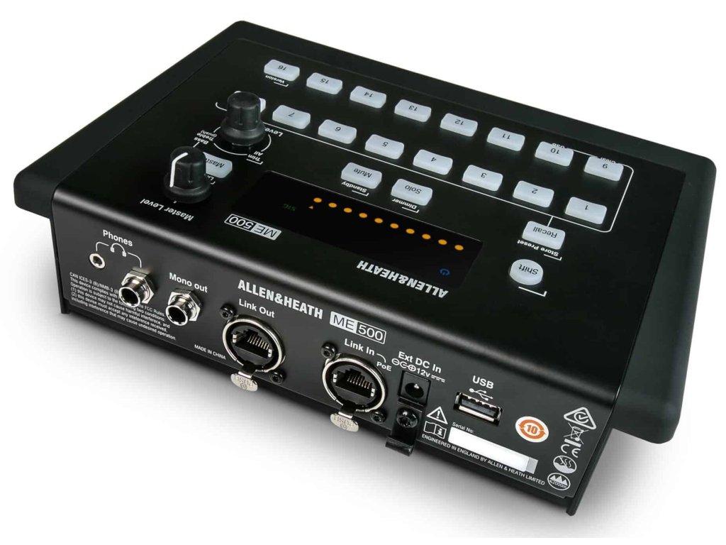 ME-500 to efektywny interfejs sterowania do zarządzania odsłuchami w ramach cyfrowego ekosystemu serii dLive. Kontrastowy wyświetlacz OLED, intuicyjne elementy sterujące i łączność plug’n’play, wraz z niezależnymi muzykami, którzy mogą w ten sposób konfigurować swoje odsłuchy, zapewniają znaczną oszczędność czasu dla realizatorów dźwięku.