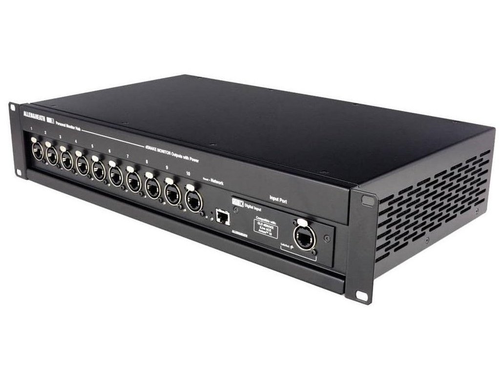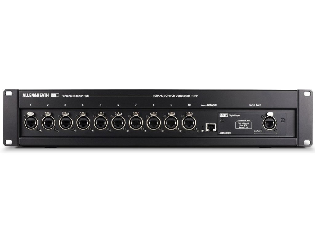 Allen & Heath ME-U to 10-portowy hub touringowy umożliwiający rozprowadzenie sygnału audio i zasilania za pomocą kabla Ethernet do wielu osobistych mikserów ME-1 i ME-500. Jest dostarczany z kartą wejściową kompatybilną z mikserami Allen & Heath dLive, Avantis, SQ i Qu.