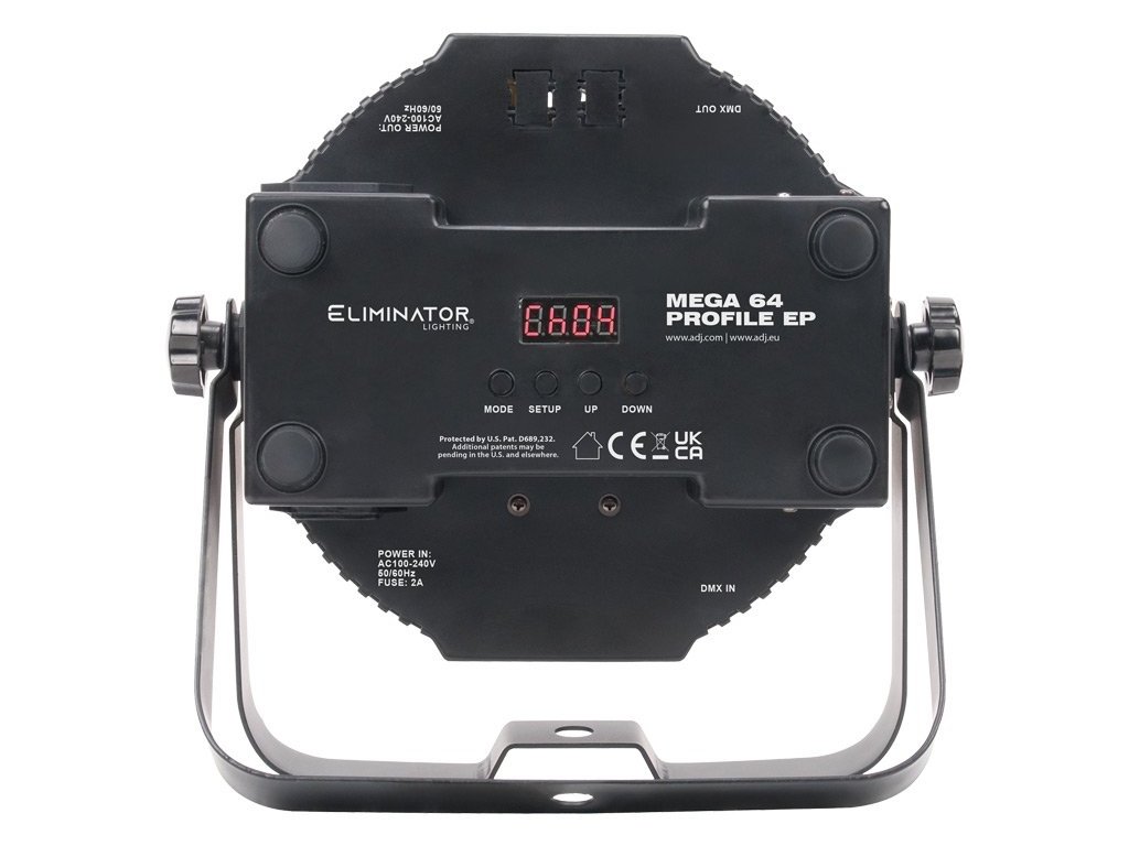Reflektor Mega 64 Profile EP został inteligentnie zaprojektowany tak, aby mógł stać bezpośrednio na ziemi lub wewnątrz konstrukcji kratownicowej bez zawieszki, ponieważ wejścia i wyjścia zasilania i DMX są umieszczone z boku urządzenia, a nie z tyłu. Jego nóżki i uchwyt montażowy umożliwiają maksymalną wszechstronność oświetlenia, które można użyć jako podłogowy reflektor wash lub zawiesić na konstrukcjach kratownicowych. Ten reflektor LED oferuje płynne mieszanie kolorów bez cieni RGB+UV, ma kąt wiązki 25° i 5 trybów kanałów DMX dla różnych opcji programowania. Użytkownicy mogą również użyć bezprzewodowego pilota zdalnego sterowania ADJ LED RC2 (sprzedawany oddzielnie) do sterowania Mega 64 Profile EP.
