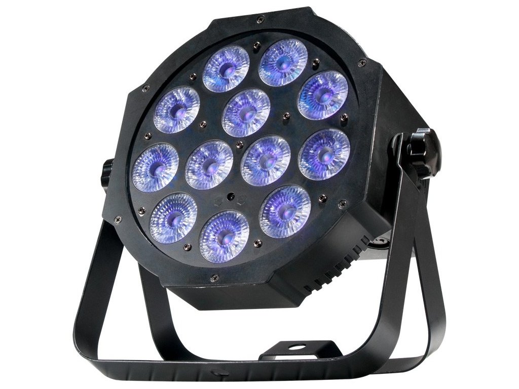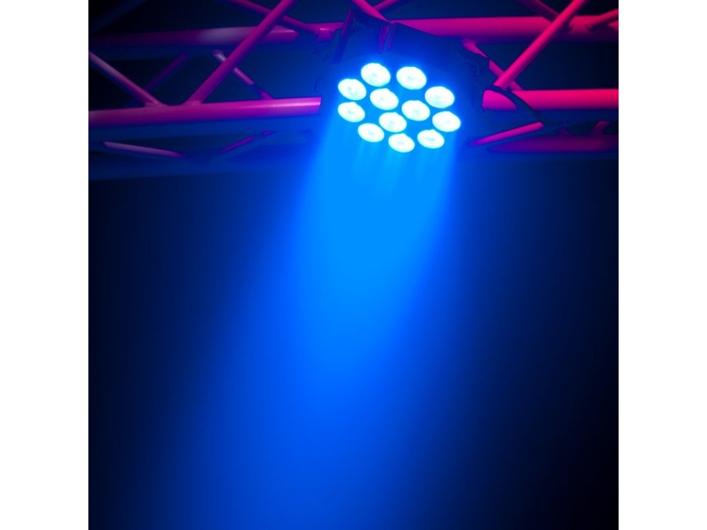 Eliminator Lighting Mega 64 Profile EP to kompaktowy, niskoprofilowy reflektor LED wash PAR przeznaczony do oświetlania pionowego, oświetlenia scenicznego i oświetlania ścian typu wash, który wnosi kolory i emocje do mniejszych wydarzeń lub małych przedstawień scenicznych. Reflektor Mega 64 Profile EP jest wyposażony w 12x 4W RGB+UV LED, a dzięki diodom UV oferuje unikalną, żywszą paletę barw niż reflektory z tradycyjnymi diodami RGB.