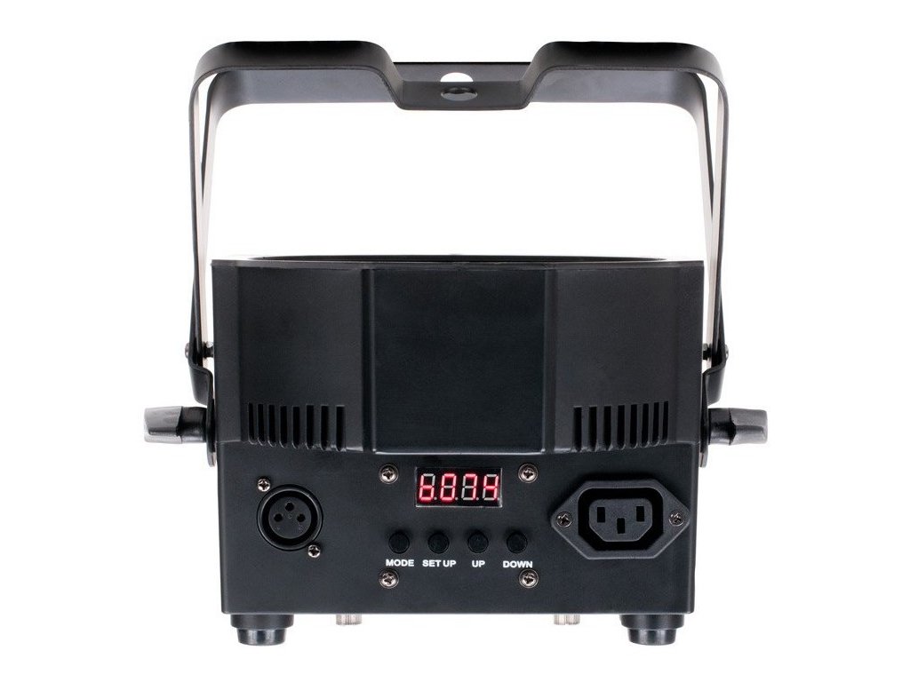 - 5 trybów pracy: Tryb automatyczny (tryb zmiany 16 kolorów, tryb przenikania 16 kolorów i 1 tryb kombinowany), tryb Sound Active (16 trybów), tryb ściemniacza RGB+UV, tryb statycznego koloru (64 kolory) i tryb sterowania DMX - Cyfrowy wyświetlacz DMX z 4-przyciskowym menu umożliwia prostą nawigację