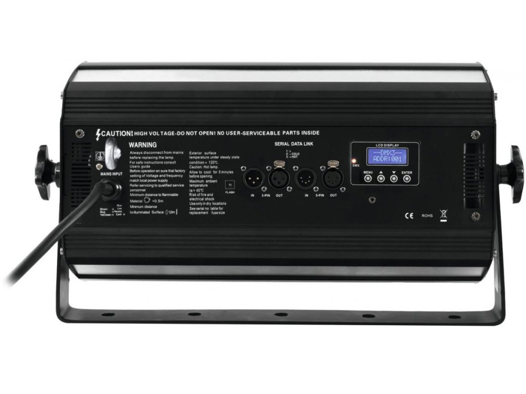 Megastrobo o mocy 3000 W z możliwością sterowania DMX. Dzięki swojej mocy ten stroboskop jest idealny na większe imprezy i koncerty. Można regulować jasność, częstotliwość błysków i czas trwania błysku. Dodatkowo stroboskop posiada efekt Blinder i różne efekty specjalne, które pozwolą stworzyć niepowtarzalną atmosferę. Lampa błyskowa 3000 W jest już zainstalowana, a wraz z kompleksowym systemem reflektorów zapewnia maksymalną moc światła. Stroboskopem można sterować w trybie 1, 3 lub 4-kanałowym, a chłodzenie zapewnia wentylator. Obsługa stroboskopu jest bardzo prosta i można go używać jako samodzielne urządzenie lub przez DMX. Urządzenie jest wstępnie zaprogramowane w LED PC-Control 512 i umożliwia generowanie różnych typów efektów stroboskopowych. Stroboskop jest dostarczany z uchwytem montażowym i wyświetlaczem LCD, co ułatwia jego instalację i obsługę.