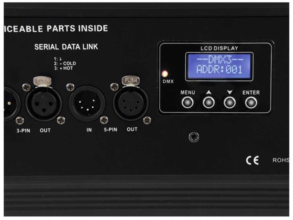 - Złącza DMX: 3-pin XLR i 5-pin XLR
