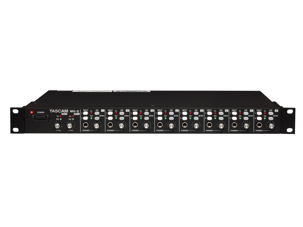 Tascam MH-8 to rackowy 8-kanałowy wzmacniacz słuchawkowy odpowiedni do stałych instalacji oraz do użytku w studio i podczas nagłaśniania. Oferuje wysoką moc wyjściową dla każdego wyjścia słuchawkowego i możliwość wyboru jednego z trzech źródeł sygnału.