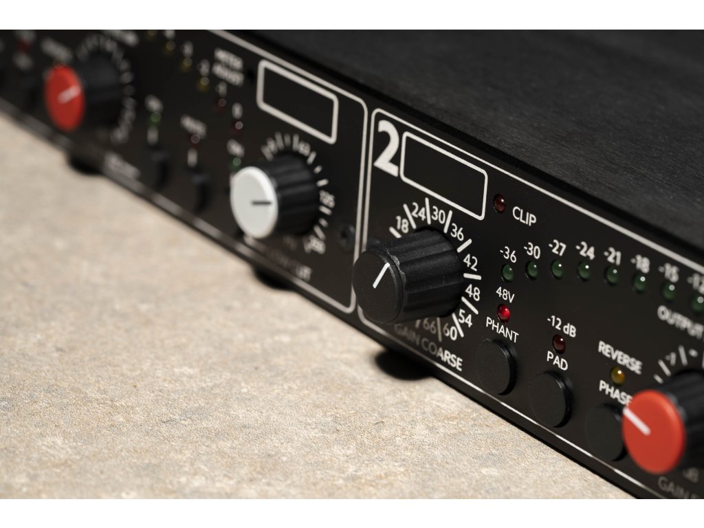 2-kanałowy przedwzmacniacz mikrofonowy najwyższej jakości z wejściami klasy A. Ekstremalnie nisko szumowy przedwzmacniacz mikrofonowy o doskonałych właściwościach dźwiękowych i luksusowych funkcjach.