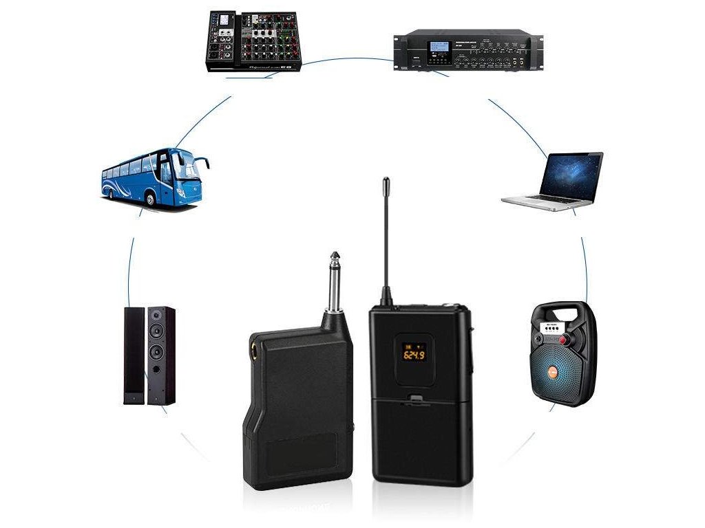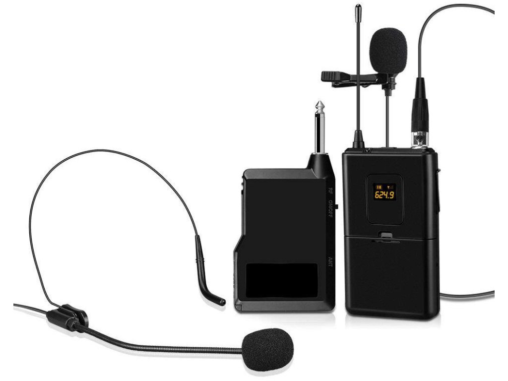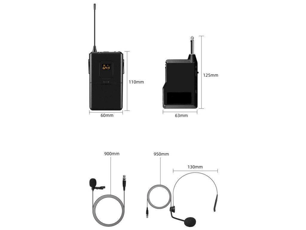 – Zawartość opakowania: Odbiornik, nadajnik, mikrofon nagłowny, mikrofon krawatowy