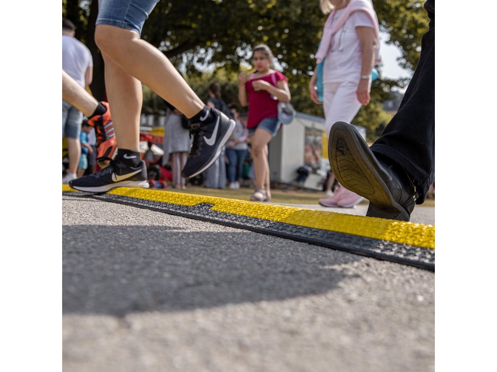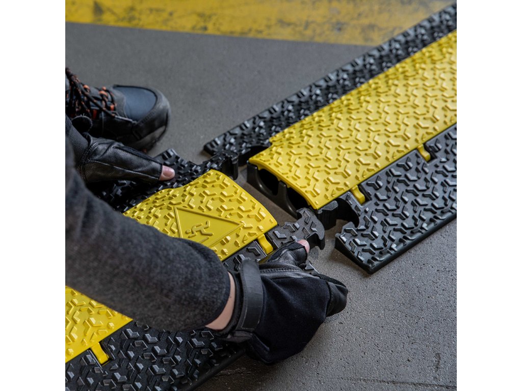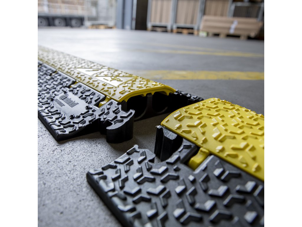 Bezpieczeństwo i wytrzymałość Dzięki maksymalnej nośności 2 ton na powierzchni 20 x 20 cm niezawodnie chroni Twoje kable przed pojazdami, wózkami i pieszymi. Wyjątkowo wytrzymały materiał TPU zapewnia długą żywotność. Powierzchnia LaserGrip® z innowacyjną strukturą 3D znacznie zwiększa odporność na nadepnięcia i poślizg, minimalizując ryzyko przesuwania się osłon nawet podczas przejazdu ciężkich pojazdów.