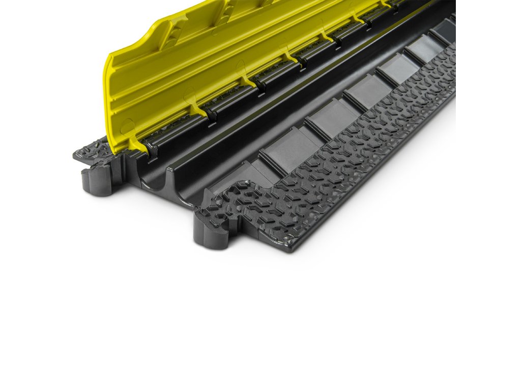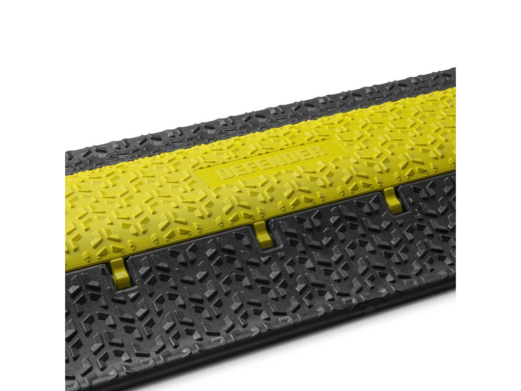 Solidna ochrona kabli do każdego zastosowania. Kompaktowa osłona kablowa Defender MICRO 2 jest idealna do użytku wewnątrz i na zewnątrz, czy to na wystawach, w centrach handlowych, na scenach, czy w studiach. Oferuje dwa oddzielne rowki na kable lub węże o wymiarach 35 x 30 mm.