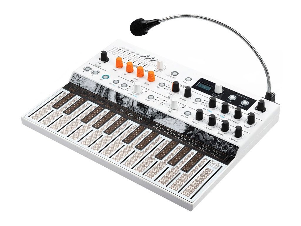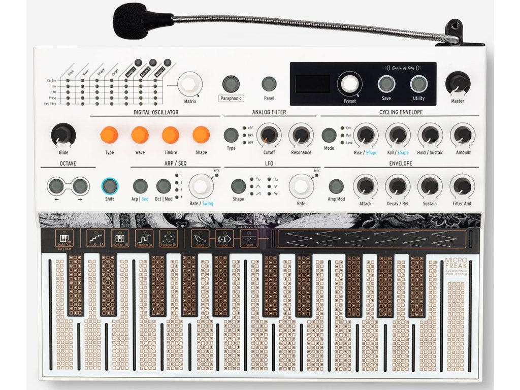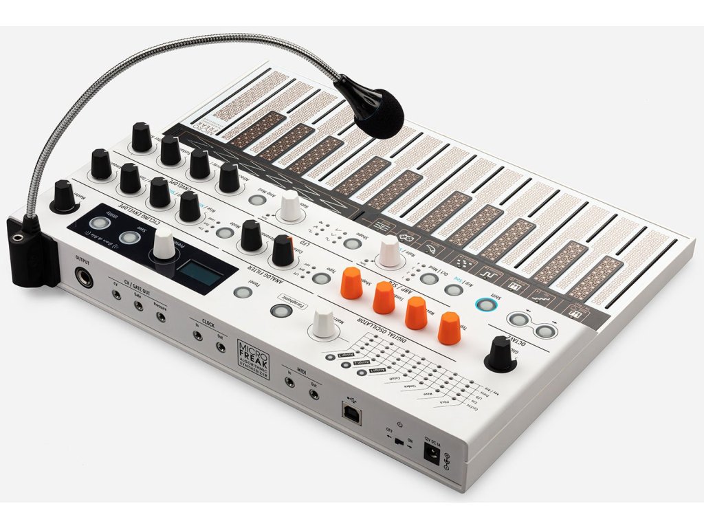 Arturia Microfreak Vocoder to limitowana edycja oryginalnego syntezatora z cyfrowymi oscylatorami, analogowym filtrem i dźwiękami z popularnego modułu eurorack Plaits firmy Mutable Instruments. Dodatkowo seria Vocoder zawiera odłączany mikrofon na gęsiej szyi do tworzenia melodyjnych linii wokalnych. Działa w trybie monofonicznym i parafonijnym, zachwyca płaską klawiaturą z polifonicznym aftertouch i posiada sekwencer, arpeggiator, matrycę modulacji oraz zaawansowane funkcje losowe. W tej kategorii cenowej jest to zdecydowanie jeden z najciekawszych instrumentów.