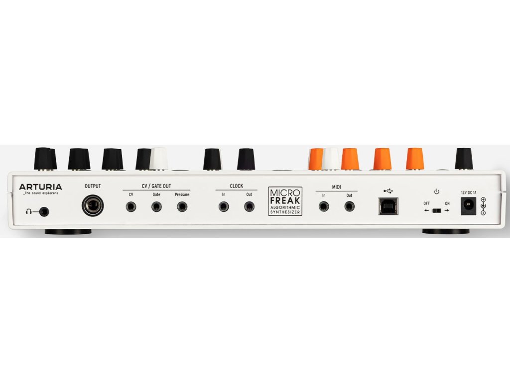 Jeśli brakuje Ci tradycyjnego sterowania, na tylnym panelu znajdziesz wejścia USB, MIDI i CV, za pomocą których z łatwością połączysz Microfreak z ulubionym kontrolerem, sekwencerem, DAW lub na przykład syntezatorem modularnym.
