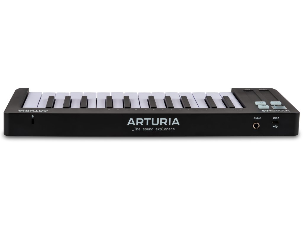 Dzięki ultra-kompaktowym rozmiarom, wysokiej jakości klawiaturze i intuicyjnej obsłudze, MicroLab mk3 jest doskonałym kontrolerem MIDI dla producentów pracujących w małych studiach, w podróży lub dopiero zaczynających przygodę z produkcją muzyczną. Niezależnie od tego, czy jesteś w domu, w studio, czy w podróży, małe rozmiary i wysokiej jakości klawisze slim MicroLabu pozwolą Ci tworzyć bez zastanawiania się. Mały, lekki, wytrzymały i zasilany przez USB – idealny do mobilnego tworzenia muzyki i kompaktowych zestawów studyjnych. Podłącz go i od razu zacznij grać. Uruchom swój ulubiony dźwięk w Analog Lab, użyj trybu Chord do tworzenia harmonii za pomocą jednego klawisza, kształtuj swoje występy za pomocą pasków dotykowych i podłącz pedał sustain dla większej ekspresji – a wszystko to dzięki bezproblemowej integracji przez USB-C.
