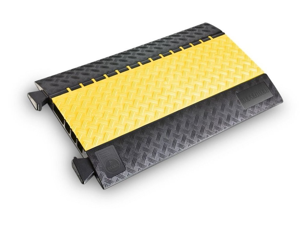 Najazd kablowy DEFENDER® MIDI 4C ma trzy kanały kablowe o wymiarach 34 x 36 mm każdy, plus szeroki kanał na węże (80 x 36 mm) i jest idealnym rozwiązaniem, jeśli trzeba ułożyć wąż równolegle do kabli. Najazdy kablowe MIDI 4C z wbudowanymi złączami, niskim profilem i nośnością 5 ton na powierzchni 25 x 30 cm (jako system DEFENDER® MIDI) nadają się do szerokiego zakresu zastosowań, np. do użytku przemysłowego, na place budowy, do magazynów, centrów handlowych, na targi, wystawy, karnawały i imprezy muzyczne.