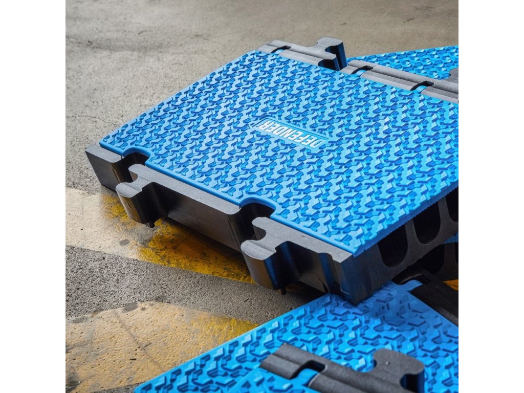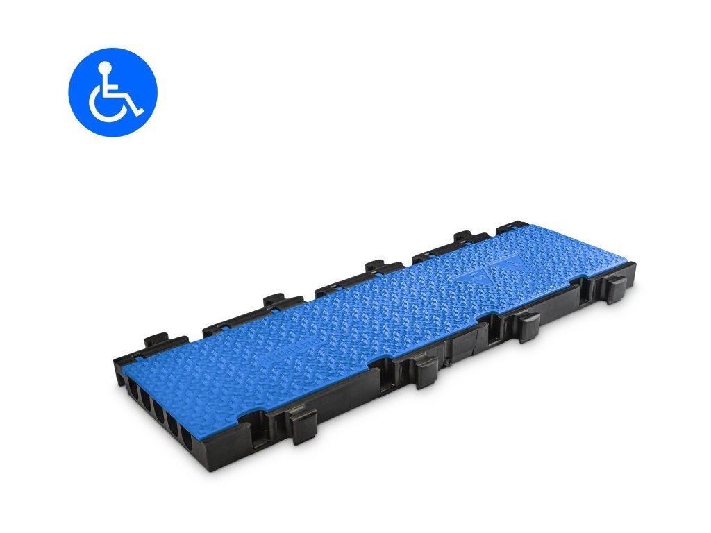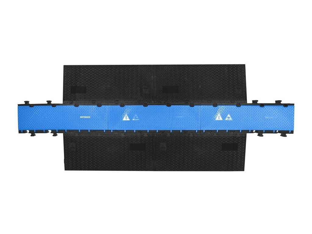 Modułowy najazd kablowy DEFENDER® 2D M Blue został opracowany na bazie naszego popularnego najazdu kablowego DEFENDER® MIDI, aby zapewnić optymalne przejście dla osób na wózkach inwalidzkich. Składa się z kompatybilnej części środkowej i płaskiej rampy, którą można dowolnie rozszerzać i łączyć, zarówno na długość, jak i na szerokość. Z niezwykle łatwą obsługą.