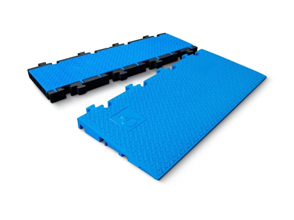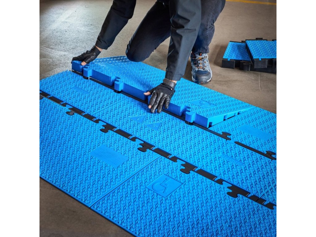 Złącza zostały zaprojektowane tak, aby miały wystarczający luz dla łatwego montażu, a jednocześnie zapewniały wystarczającą stabilność. Podłużne połączenie ramp jest na mały występ, który zatrzaśnie się na miejscu, gdy element jest aplikowany z góry. Elementy dlatego po wsunięciu złączek krzyżowych nie muszą być ponownie podnoszone. Dla jeszcze łatwiejszej manipulacji rampy są wyposażone w ergonomiczną rączkę do przenoszenia.