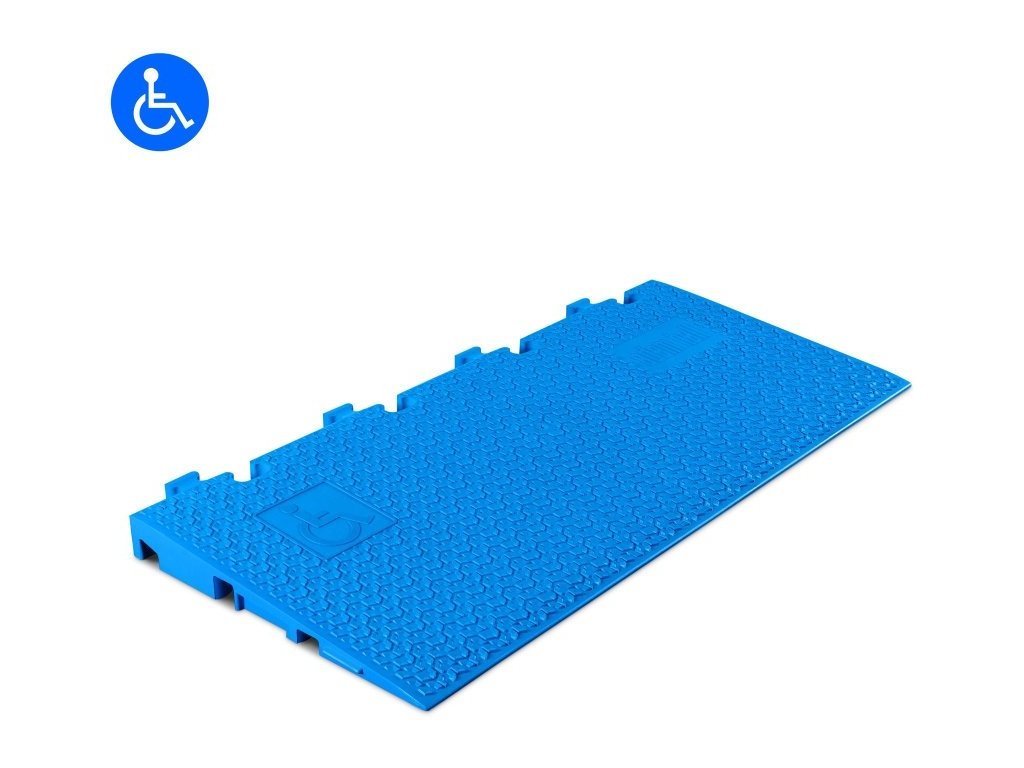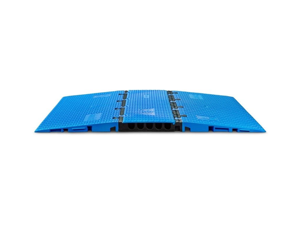 Kwestia dostępności jest szczególnie ważna dla organizatorów i władz w ostatnich latach. W przypadku konwencjonalnych systemów najazdów kablowych często konieczne było pójście na kompromis między dostępem bez barier a przepustowością. Inaczej jest w przypadku nowego DEFENDER® 2D M: Do każdej części środkowej przymocowana jest całkowicie przejezdna rampa, odpowiednia dla osób na wózkach inwalidzkich o nachyleniu 6°. Nośność rampy odpowiada części środkowej i wynosi ok. 5 ton na powierzchnię 25 x 30 cm. Płaski spadek znacznie ułatwia dostęp dla osób na wózkach inwalidzkich, ale także znacznie ułatwia jazdę wózków widłowych i samochodów ciężarowych przez przejazdy kablowe.