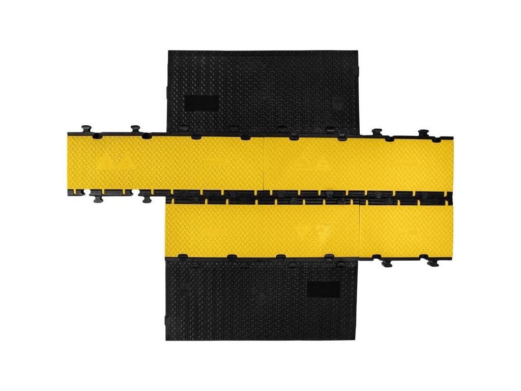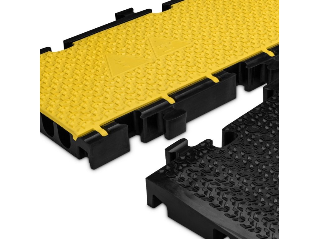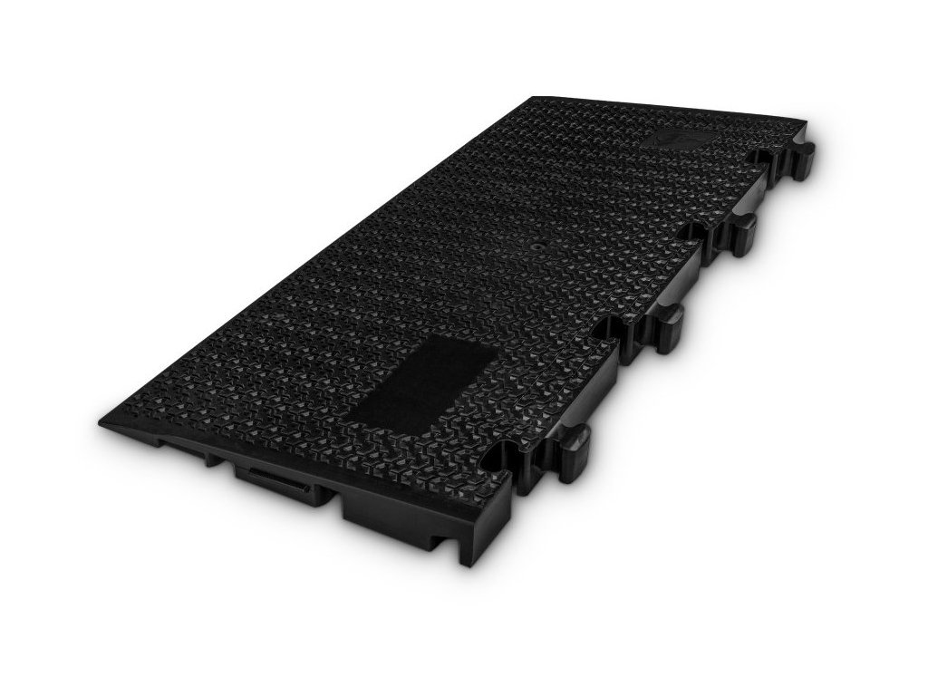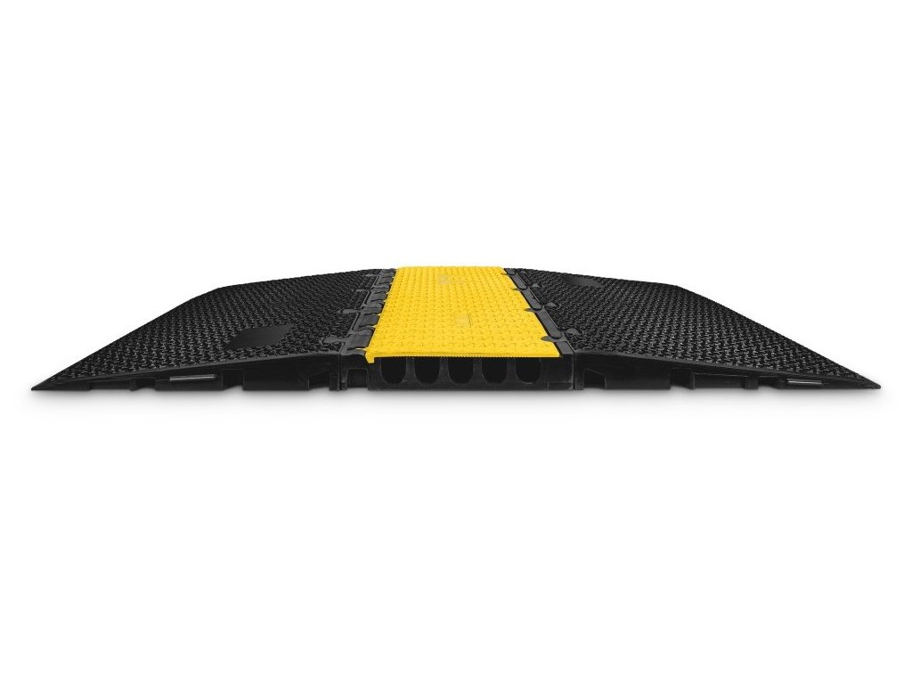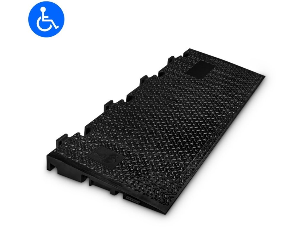 Kwestia dostępności jest szczególnie ważna dla organizatorów i władz w ostatnich latach. W przypadku konwencjonalnych systemów najazdów kablowych często konieczne było pójście na kompromis między dostępem bez barier a przepustowością. Inaczej jest w przypadku nowego DEFENDER® 2D M: Do każdej części środkowej przymocowana jest całkowicie przejezdna rampa, odpowiednia dla osób na wózkach inwalidzkich o nachyleniu 6°. Nośność rampy odpowiada części środkowej i wynosi ok. 5 ton na powierzchnię 25 x 30 cm. Płaski spadek znacznie ułatwia dostęp dla osób na wózkach inwalidzkich, ale także znacznie ułatwia jazdę wózków widłowych i samochodów ciężarowych przez przejazdy kablowe.