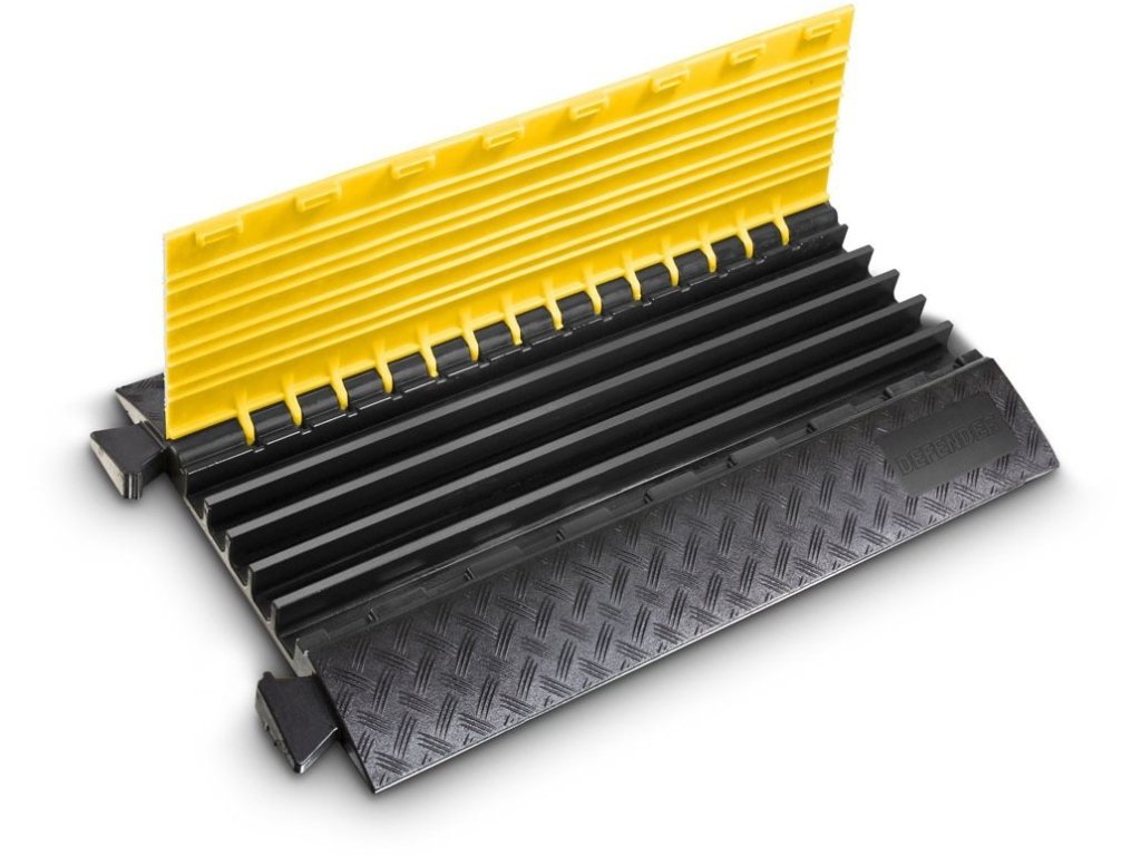 Wyjątkowo wszechstronny i bezpieczny najazd kablowy DEFENDER® MIDI charakteryzuje się płaskim profilem, nośnością 5 ton na powierzchni 25 x 30 cm, zintegrowanymi złączami i uchwytami, a także szeroką gamą elementów prostych, zakrzywień 45° i końcówek do budowy ciągłych tras kablowych. Pięć kanałów kablowych o wymiarach 34 x 36 mm każdy umożliwia bezpieczne ułożenie pojedynczych kabli audio, oświetleniowych i zasilających. Najazdy kablowe DEFENDER® MIDI nadają się do szerokiego zakresu zastosowań, takich jak ruch ciężki, place budowy, magazyny, centra handlowe, targi, wystawy, karnawały, imprezy muzyczne i studia transmisyjne.
