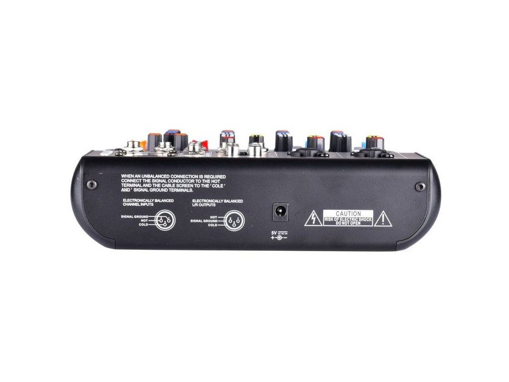Użytkownik może regulować głośność każdego kanału za pomocą suwaków, używać 3-pasmowego korektora do wysokich, średnich i niskich tonów, panoramować i wzmacniać sygnał. Dodatkowo ten audio mikser ma wbudowany efekt delay, którego częstotliwość i poziom zapisu na danym kanale można łatwo kontrolować. Sygnał wyjściowy może być doprowadzany do głośników, urządzeń zewnętrznych lub monitorowany na słuchawkach. Najmocniejszą stroną tego miksera dźwięku jest port USB z wbudowanym odtwarzaczem MP3, który umożliwia podłączenie laptopa, tabletu, zewnętrznych kart pamięci lub innych urządzeń, które wysyłają sygnał dźwiękowy do konsoli.