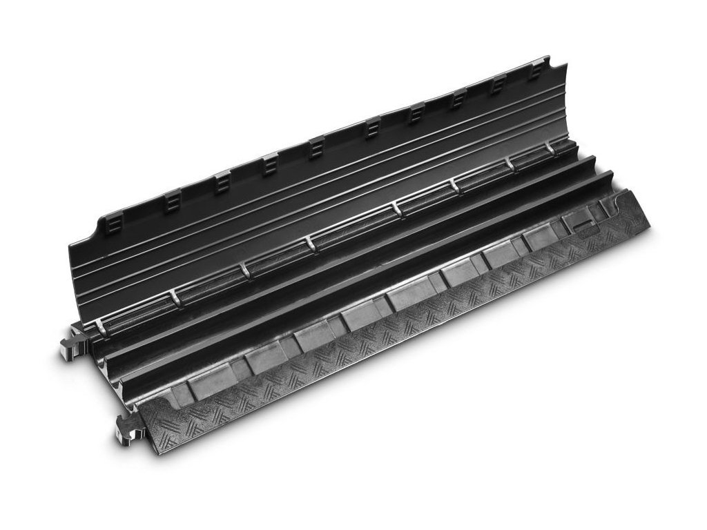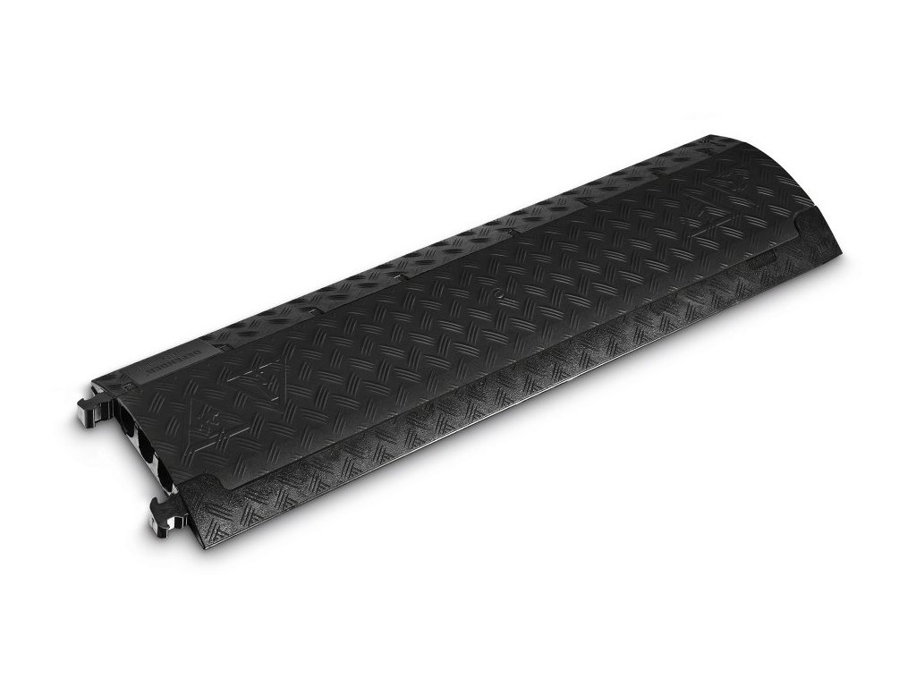 Najazd kablowy Defender® MINI jest oferowany z czarną lub żółtą pokrywą i nadaje się do użytku wewnątrz i na zewnątrz. Płaski, kompaktowy 3-kanałowy najazd kablowy ze zintegrowanymi kołkami łączącymi i antypoślizgowym spodem zapewnia optymalną przyczepność na szerokiej gamie podłóg. Oddzielnie dostępne końcówki (wtyczka/gniazdo) zapewniają bezpieczne, uporządkowane wprowadzanie i wyprowadzanie kabli. Najazdy Defender MINI wytrzymują obciążenie 2 ton na powierzchni 20 x 20 cm i umożliwiają przejeżdżanie lekkimi pojazdami, wózkami i przechodzenie pieszym. Obszary zastosowania obejmują imprezy karnawałowe, targi, wystawy, centra handlowe i magazyny, a także sceny, studia i stacje nadawcze. Nie nadają się do ruchu drogowego.