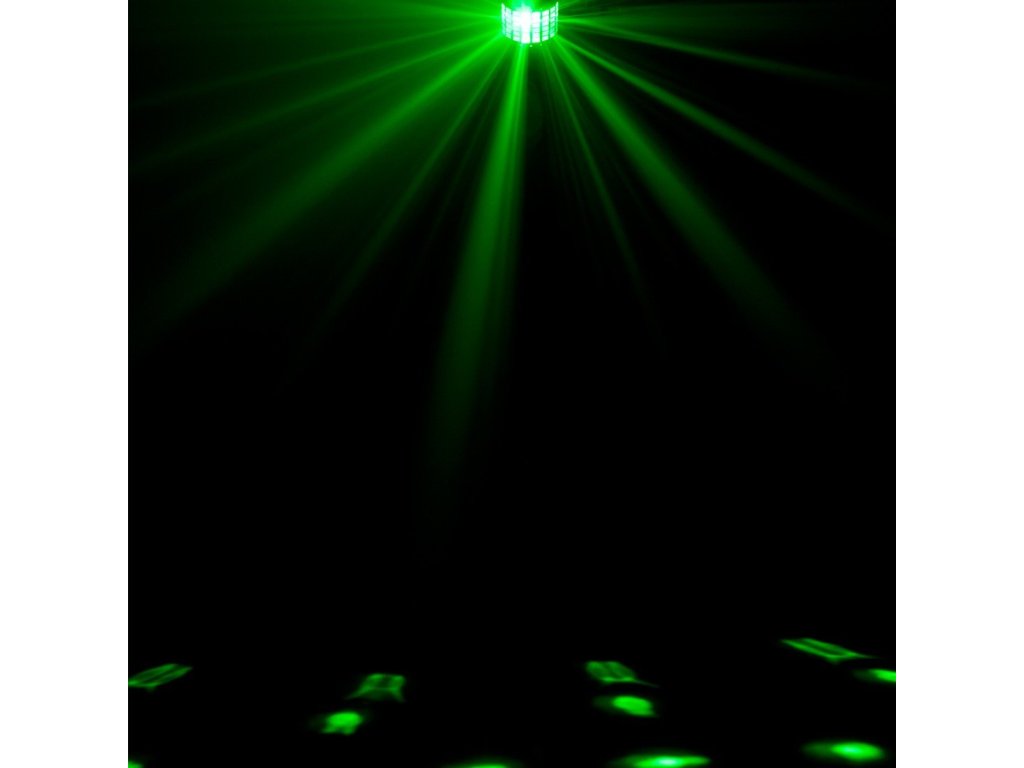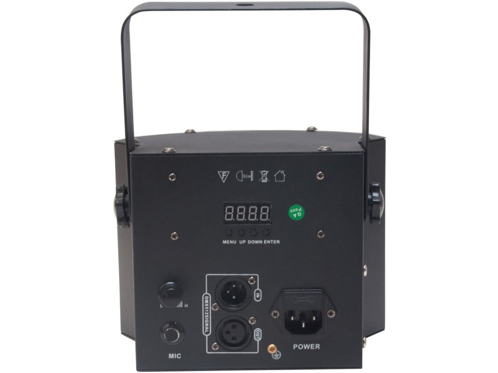 - Efekt LED DMX-512, który wytwarza wiązki RGBW (czerwone, zielone, niebieskie i białe) z 48 soczewek