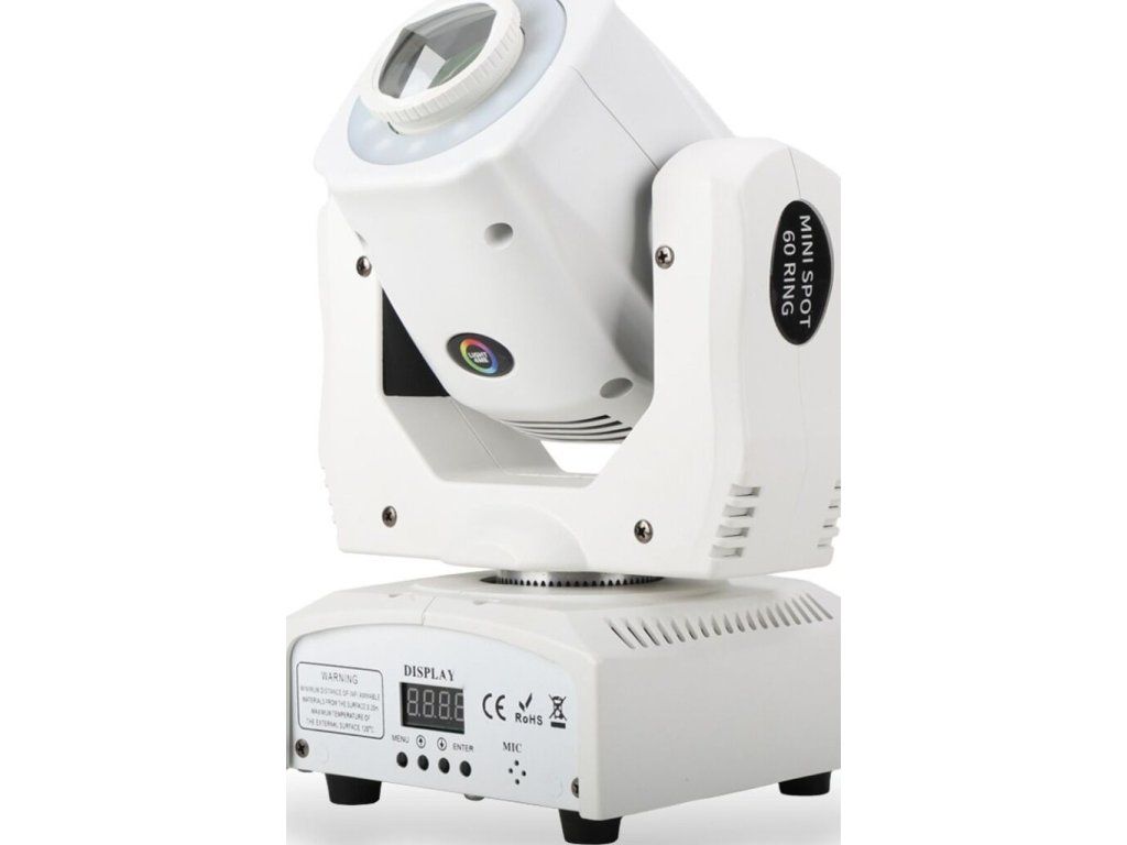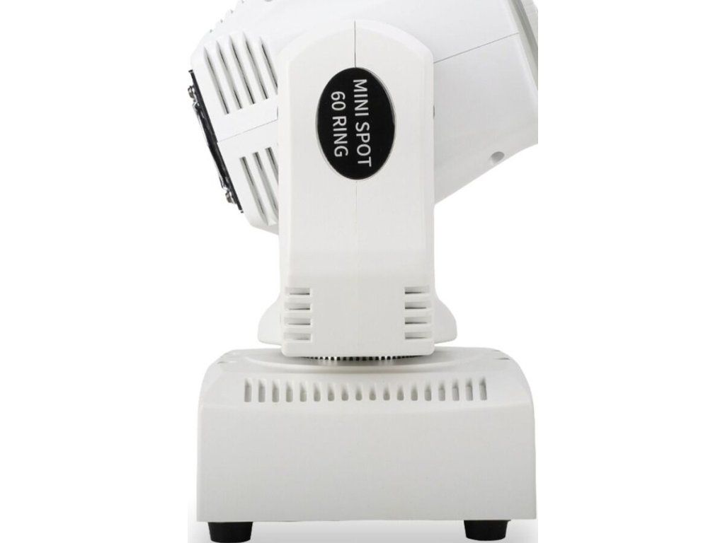 Light4Me Mini Spot 60 Ring WH to obrotowa głowica typu spot LED dla DJ-ów, klubów i małych scen, która pozwala na szybkie stworzenie dynamicznego oświetlenia parkietu, sceny lub sali eventowej. Dzięki białej diodzie LED o mocy 60 W, generującej strumień świetlny 5000 lumenów, urządzenie tworzy jasną, skupioną wiązkę światła, idealną do akcentowania parkietu, scenografii lub artystów na scenie.
