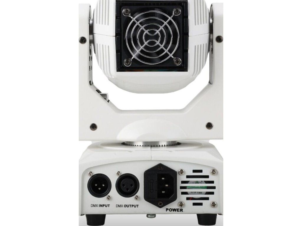 - Typ urządzenia: ruchoma głowica spot LED DMX z bezprzewodowym pilotem i uchwytem montażowym