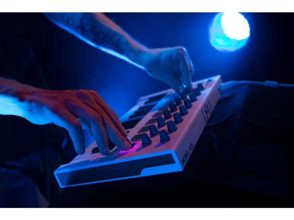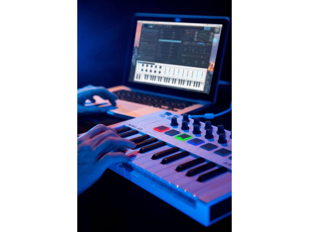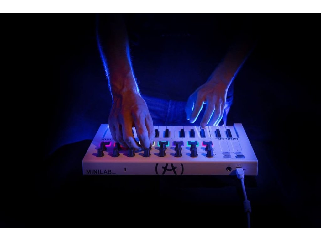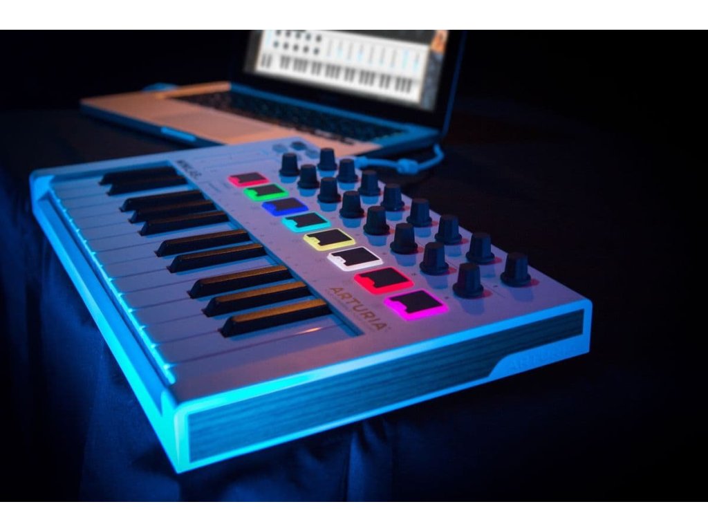Klawiszowy kontroler USB to połączenie niewielkich rozmiarów, przenośności i doskonałych właściwości użytkowych do studia lub do grania na żywo. Jak to zwykle bywa w produktach Arturii, klawiatura ma solidną konstrukcję i nowoczesny wygląd.