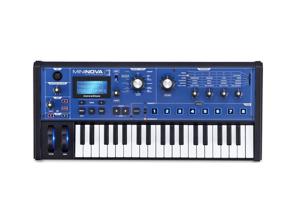 Novation MiniNova to niezwykle wydajny, a jednocześnie kompaktowy syntezator, który gra równie dobrze, jak wygląda. Oferuje innowacyjne sterowanie do grania na żywo, takie jak np. pokrętło cutoff, vocoder lub nowość VocalTuneTM. MiniNova skrywa w swoim wnętrzu ten sam silnik dźwiękowy, co flagowy produkt firmy Novation - większa "siostrzyczka" UltraNova. 3 oscylatory, do 5 efektów, 2 filtry, 6 obwiedni, 3 LFO i 36 różnych waveformów. Przeglądanie poszczególnych brzmień i wywoływanie konkretnego dźwięku jest łatwe dzięki dużemu knobowi rozdzielającemu możliwości dźwiękowe na poszczególne patche według gatunków i kółku przewijania. Instrument zawiera 256 fabrycznych i 128 użytkownickich patchy. W zestawie znajduje się darmowe oprogramowanie plug-in, które można wykorzystać do edycji patchy i organizacji biblioteki dźwięków.