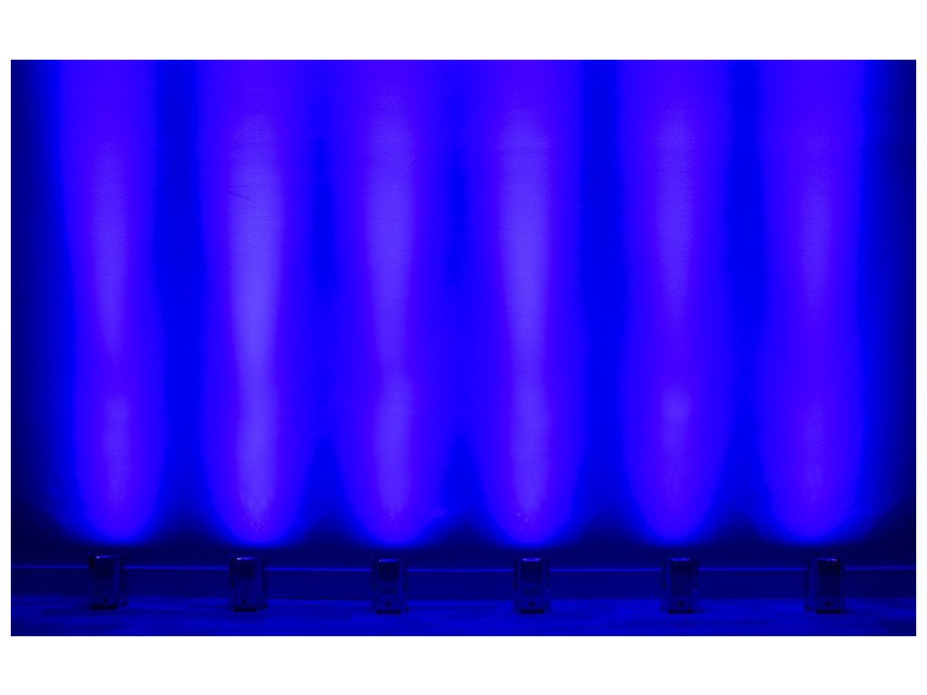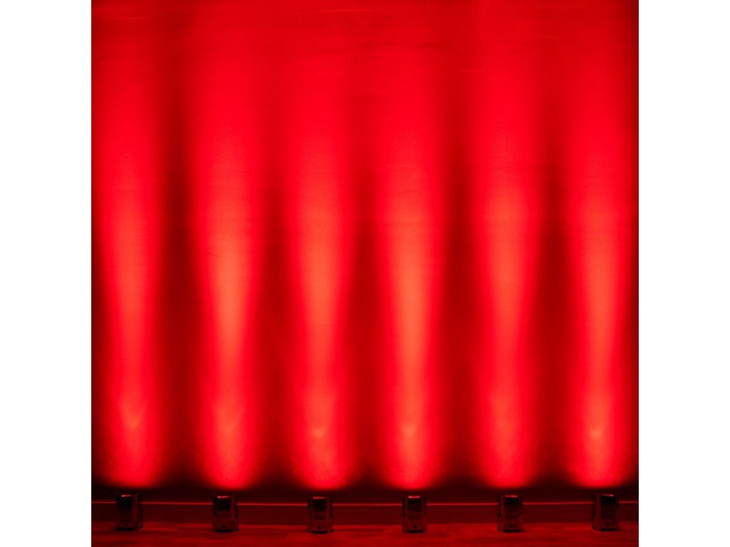 Lampy Mirage Q6 IP, idealne do oświetlania ścian.Wszystkie są wyposażone w zintegrowany uchwyt i wbudowane nóżki, co oznacza, że można je po prostu postawić na miejscu i są gotowe do użycia. Posiadają również wbudowany stojak, który umożliwia w razie potrzeby łatwe pochylenie strumienia światła do wewnątrz w kierunku ściany. Dzięki temu powstaje intensywniejsze oświetlenie typu wash i minimalizuje się wyciek światła na sufit powyżej.